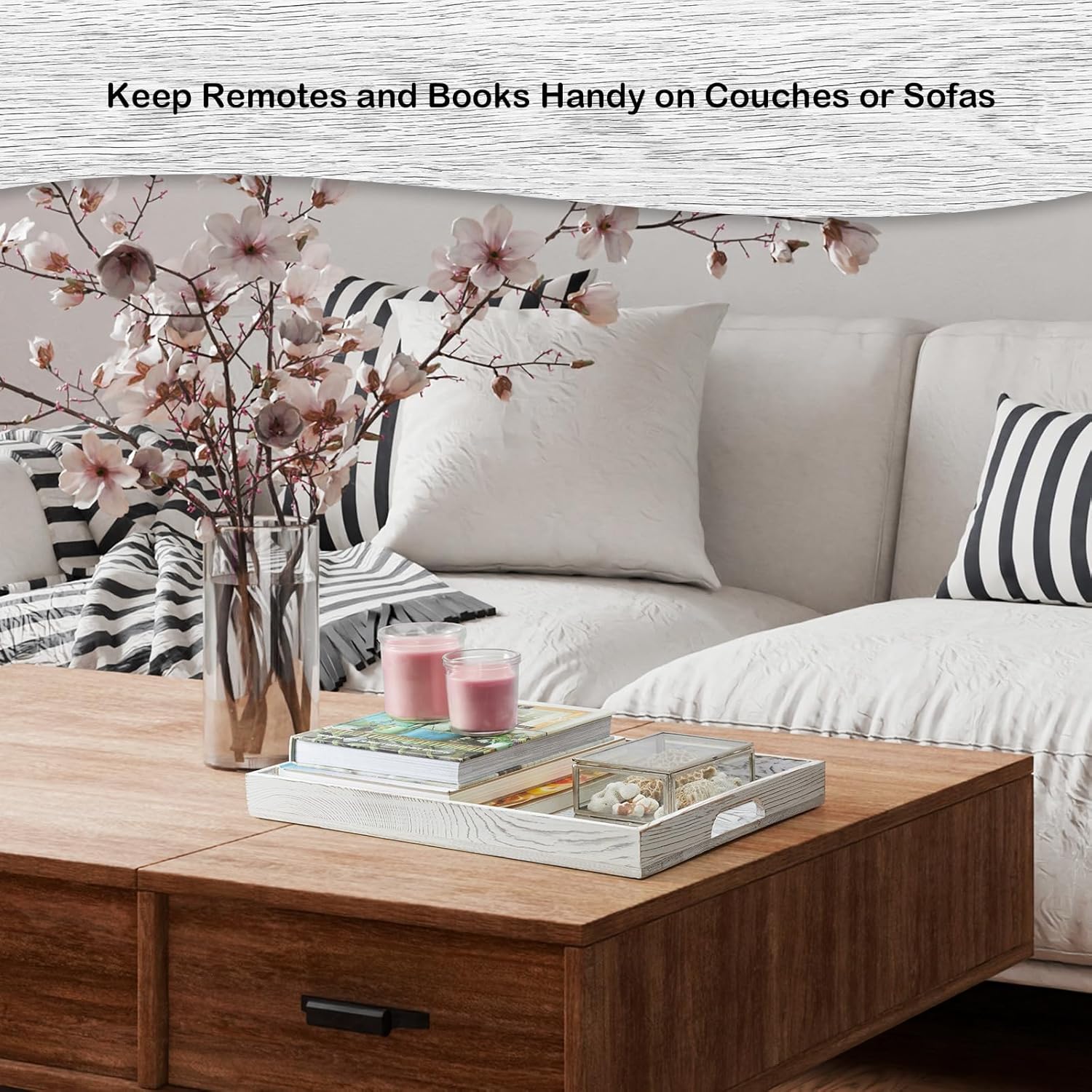 17 Inch White Serving Tray with Handles, Large Wooden Tray for Ottoman, Breakfast in Bed, Coffee Table, Dinner, Rectangular Wood Tray for Living Room Bedroom Entryway and Kitchen