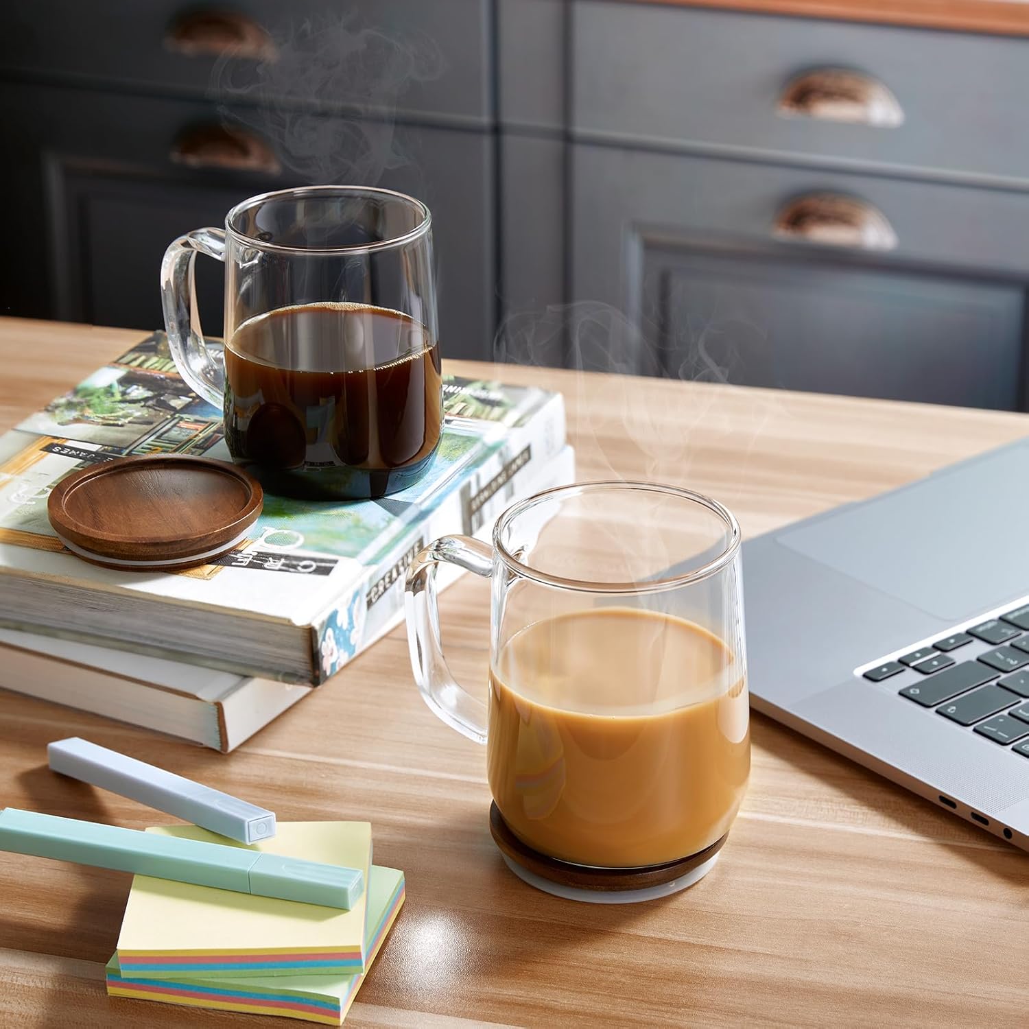 - Acacia Wood Lid: The glass coffee cup comes with an acacia wood lid featuring a double silicone ring, designed to boost sealing performance and reduce the chance of leaks or spills. The lid's construction also improves heat retention, keeping your coffee warmer in winter than other glass mugs.