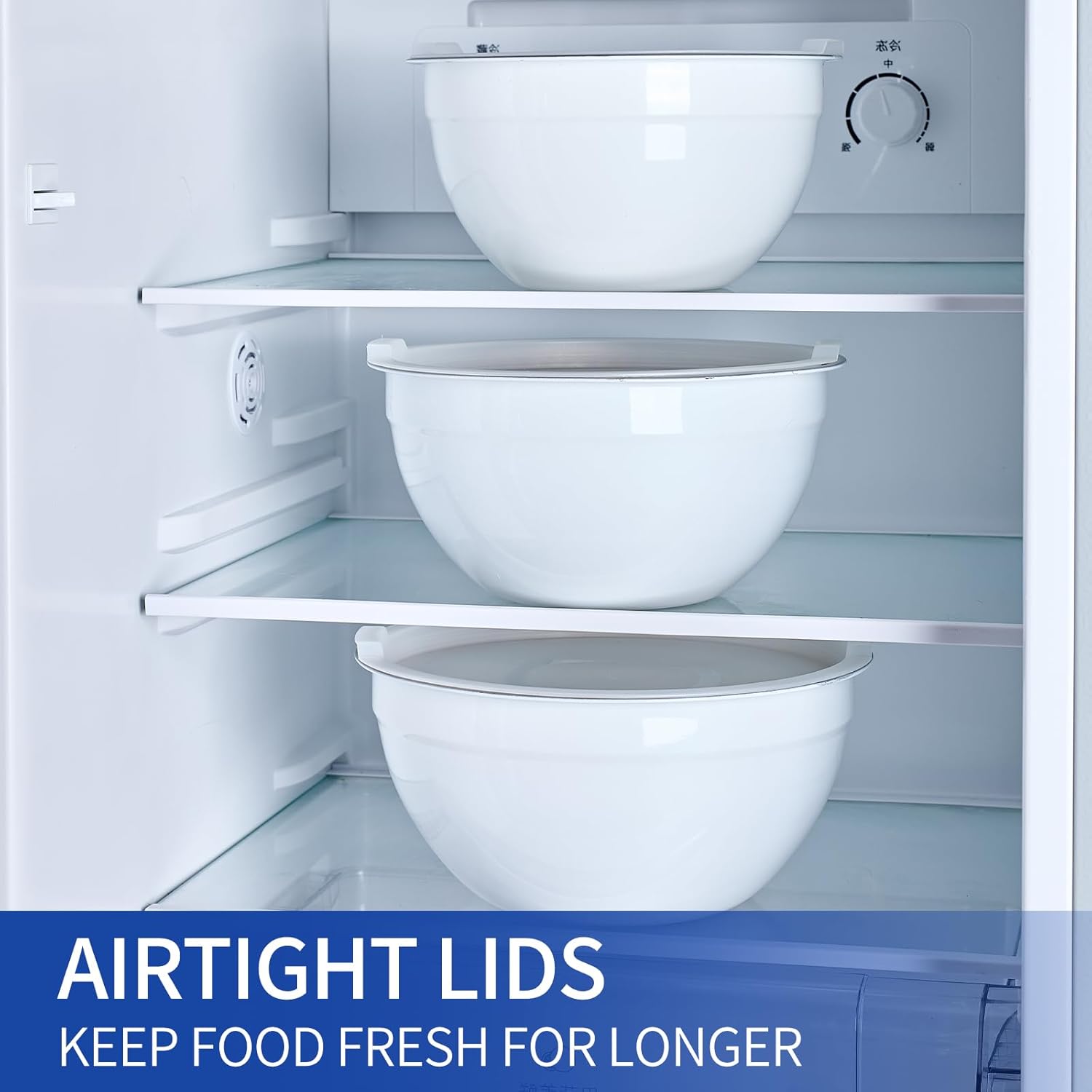 White Mixing Bowls With Airtight Lids,Stainless Steel Bowl,Salad Bowls 7 Piece Colorful Nesting Bowl White Kitchen Accessories,Size 7,3.6,2.7,2.1,1.5,1.1,0.8QT Stackable Design