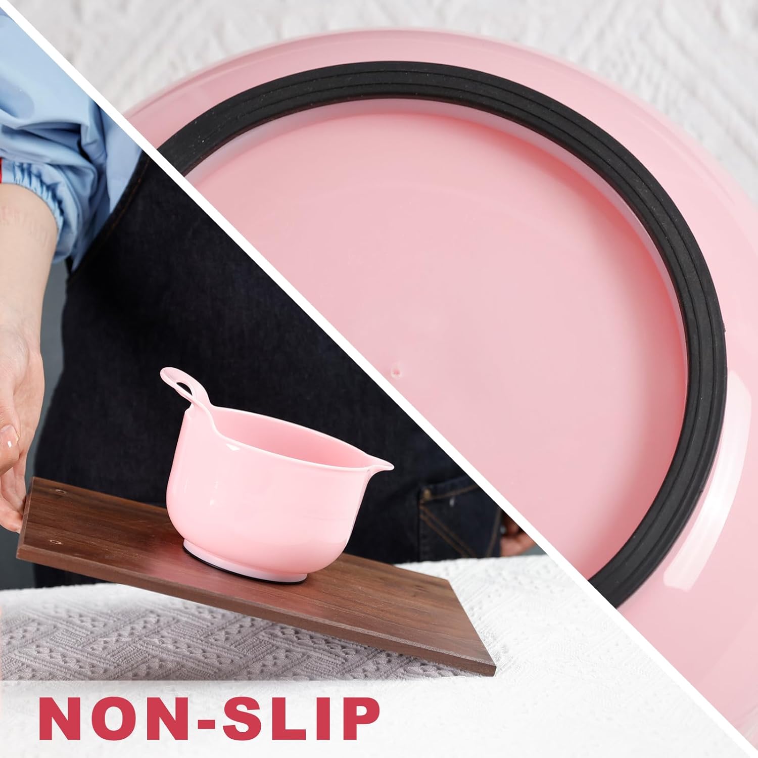 BoxedHome 4 Pack Nesting Mixing Bowl with Pour Spout and Handle, BPA free Microwave & Dishwasher Safe(Pink Gradient, 4 Pack with Handle)