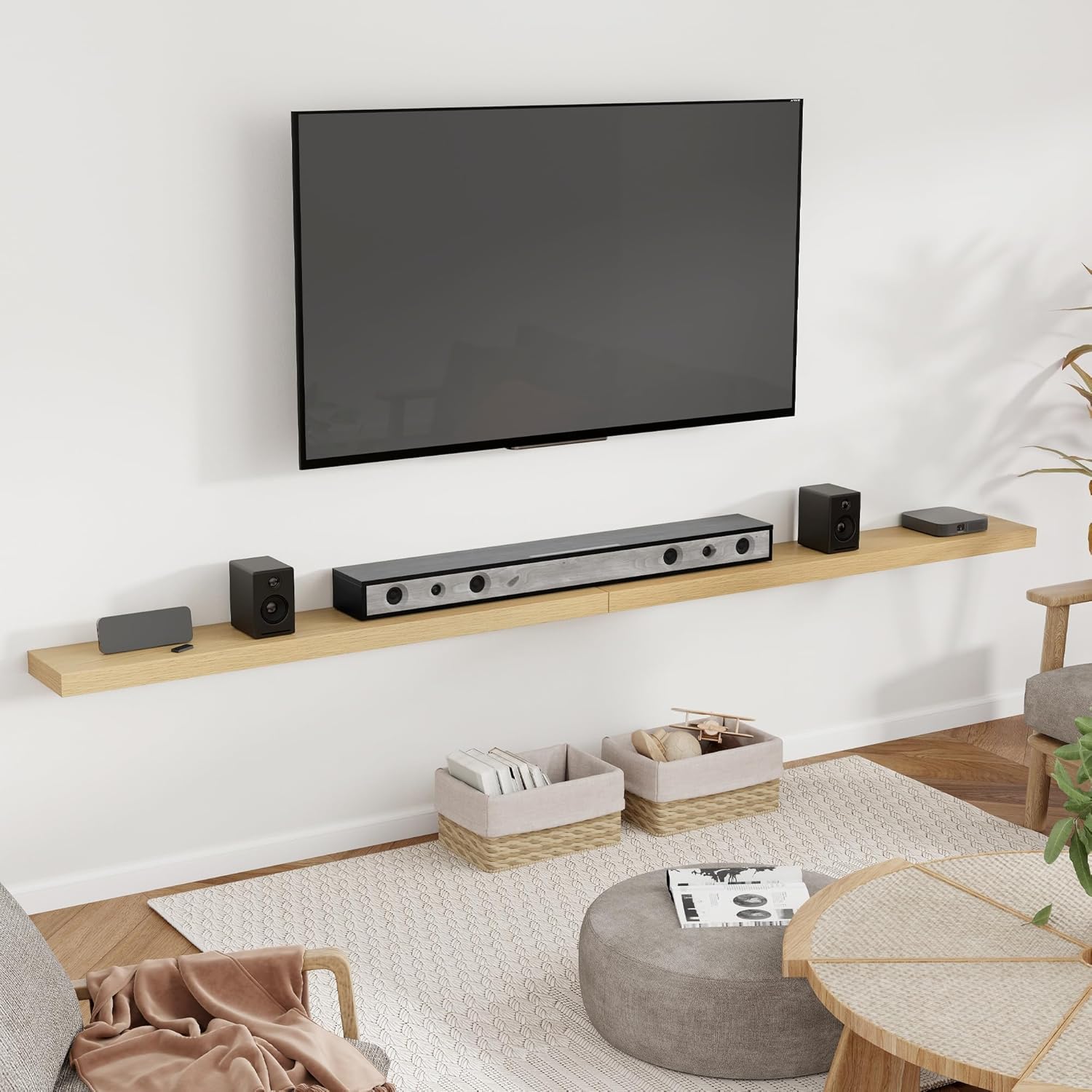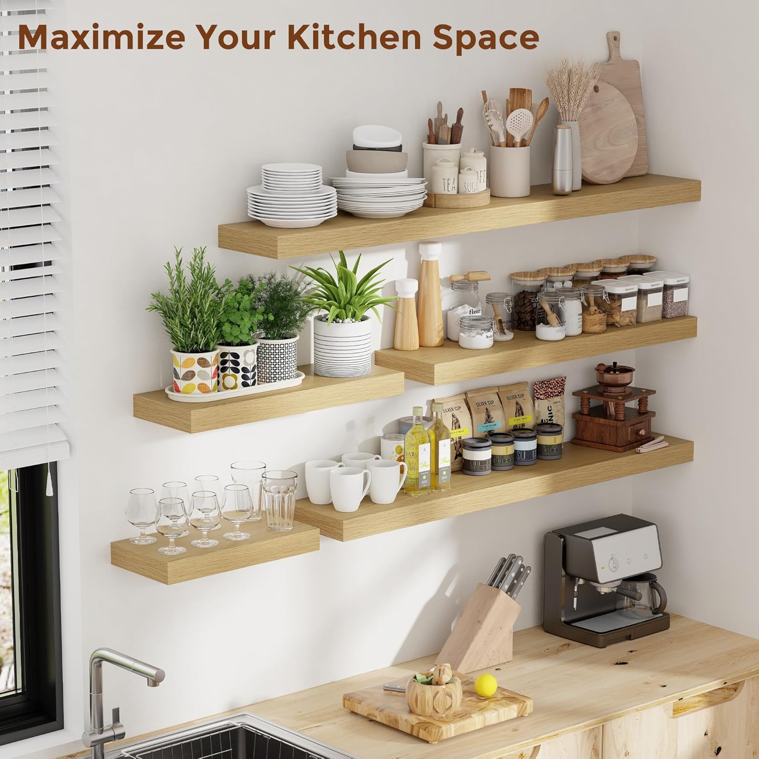 Heimlove 55 Inch Floating Shelves for Wall 8 Inch Deep Oak Shelves Set of 2,Wall Mounted Rustic Wood Long Floating Shelf,Large Extra Display & Storage Shelf with Invisible Brackets
