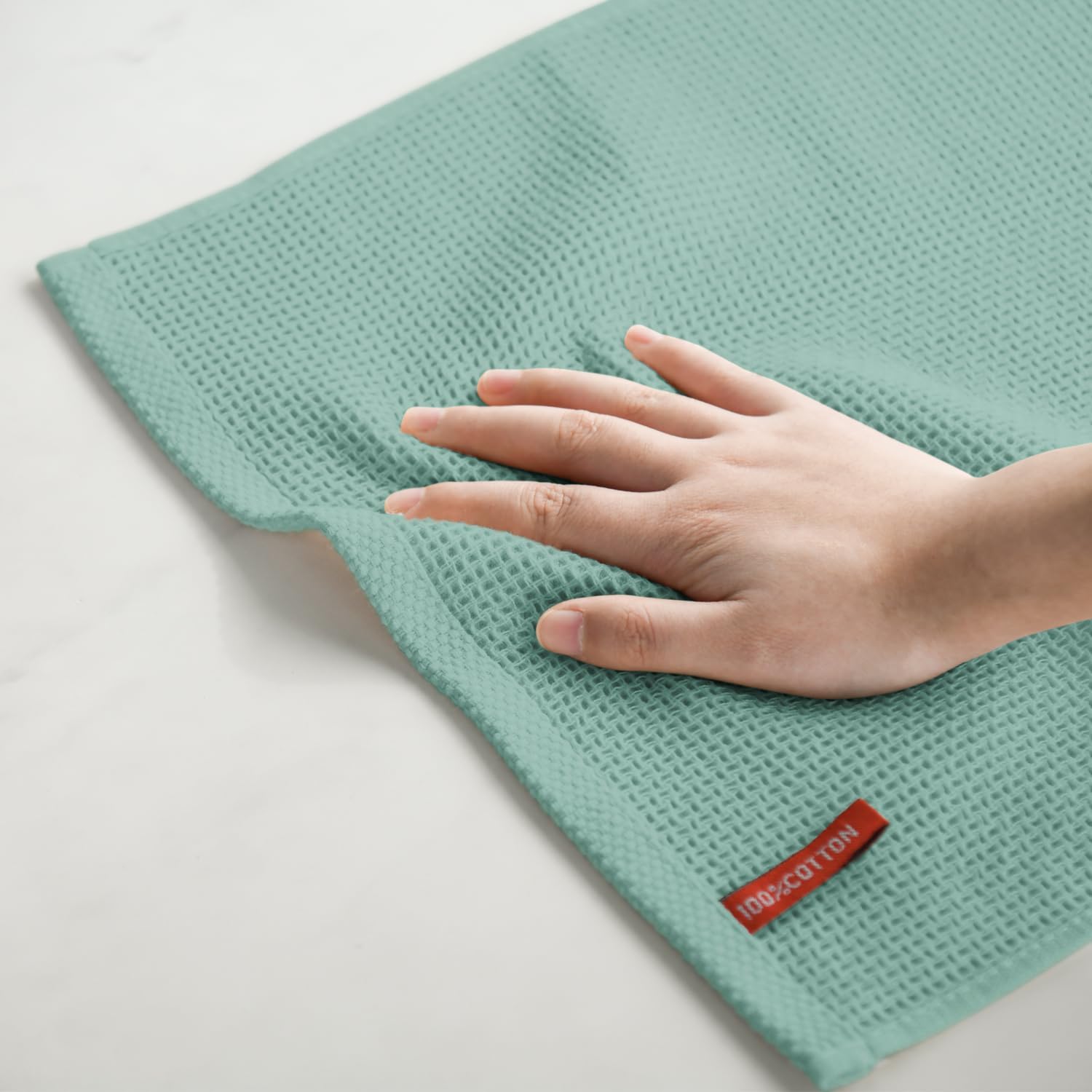 Artoid Mode 100% Cotton Light Green Waffle Weave Kitchen Dish Cloths, 13x28 Inch Ultra Soft Absorbent Quick Drying Kitchen Dish Towels Set of 4