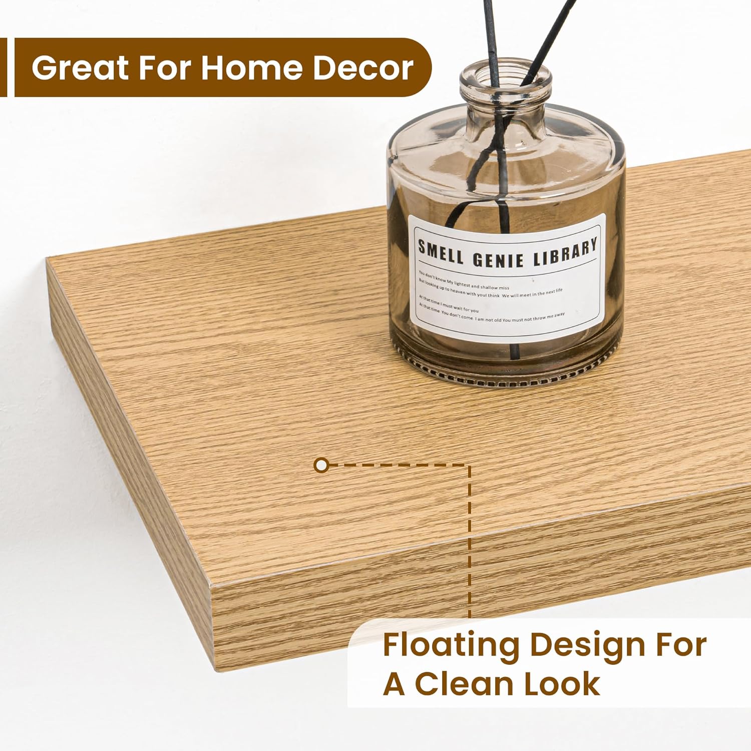 Fun Memories Floating Shelves for Wall, 30 Inch Rustic Wood Wall Mounted Shelves for Bathroom, Bedroom, Kitchen, Living Room, Deep Floating Shelves for Storage & Home Decor (Oak, Set of 2)