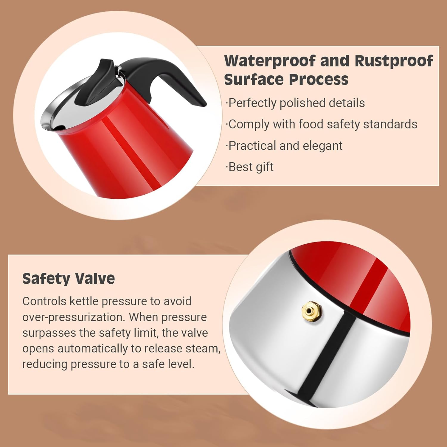 Moka Pot, 9 Cups (15.9 oz) Stovetop Espresso Maker, 304 Stainless Steel Moka Pot, Induction Compatible, Red