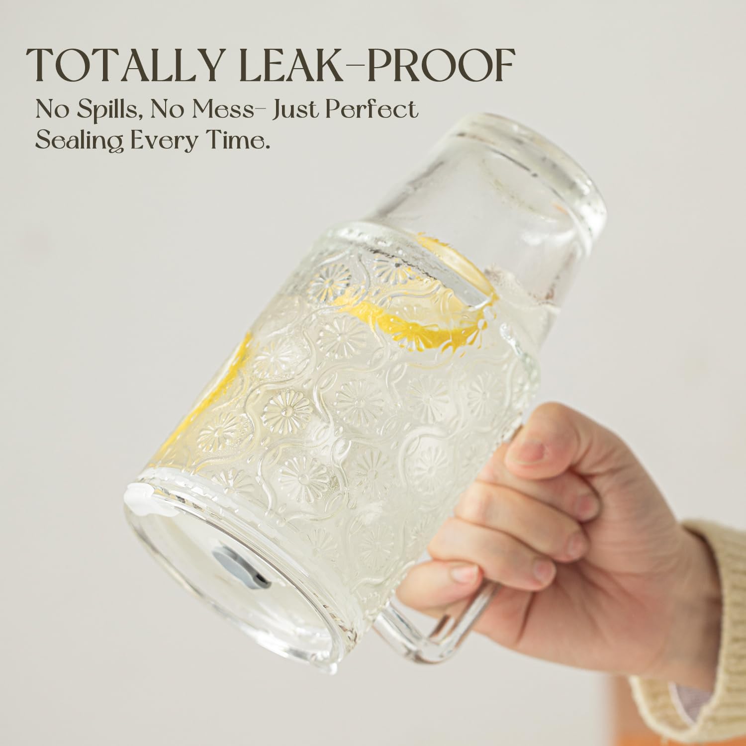 - 【24oz Glass Tumbler with Leak-Proof Lid & Straw】 This reusable drinking cup features glass straw and secure locking lid, perfect for iced coffee, smoothies, and cold beverages. The splash-proof design prevents spills during commute or office use.