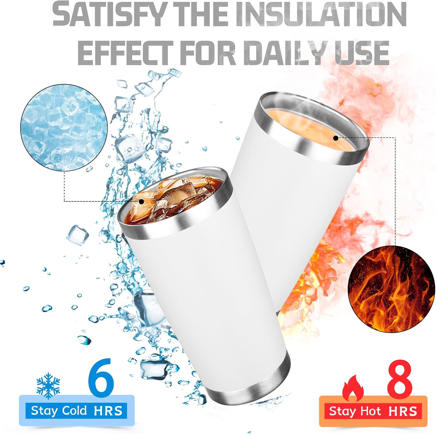 20oz Tumbler with Lid Double Wall Vacuum Insulated Travel Coffee Mug Stainless Steel Thermal Cup Powder Coated Sturdy Coffee Tumbler Bulk for Hot and Cold Beverage (White,4)