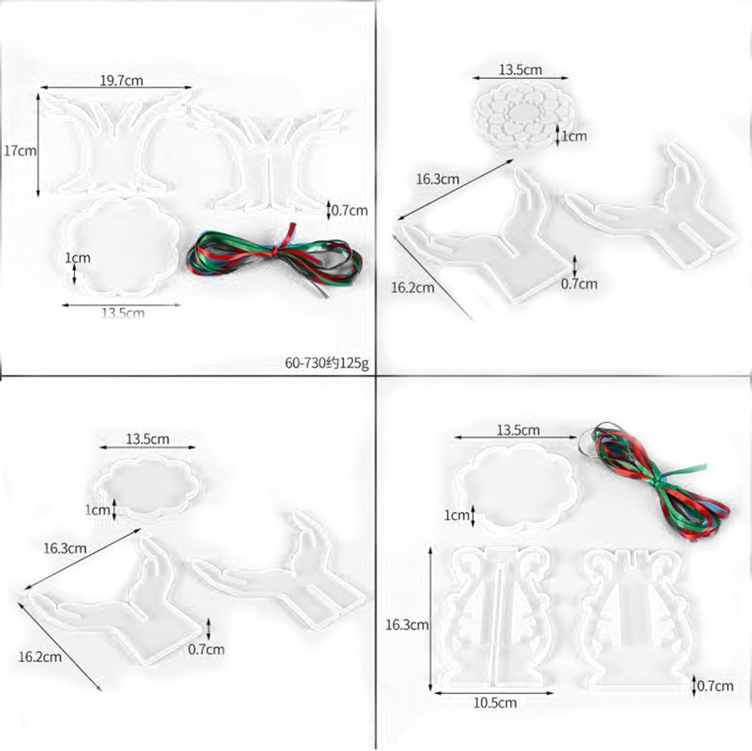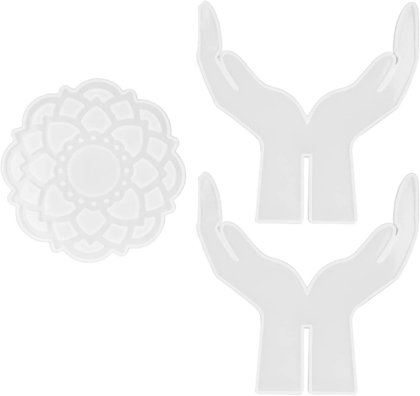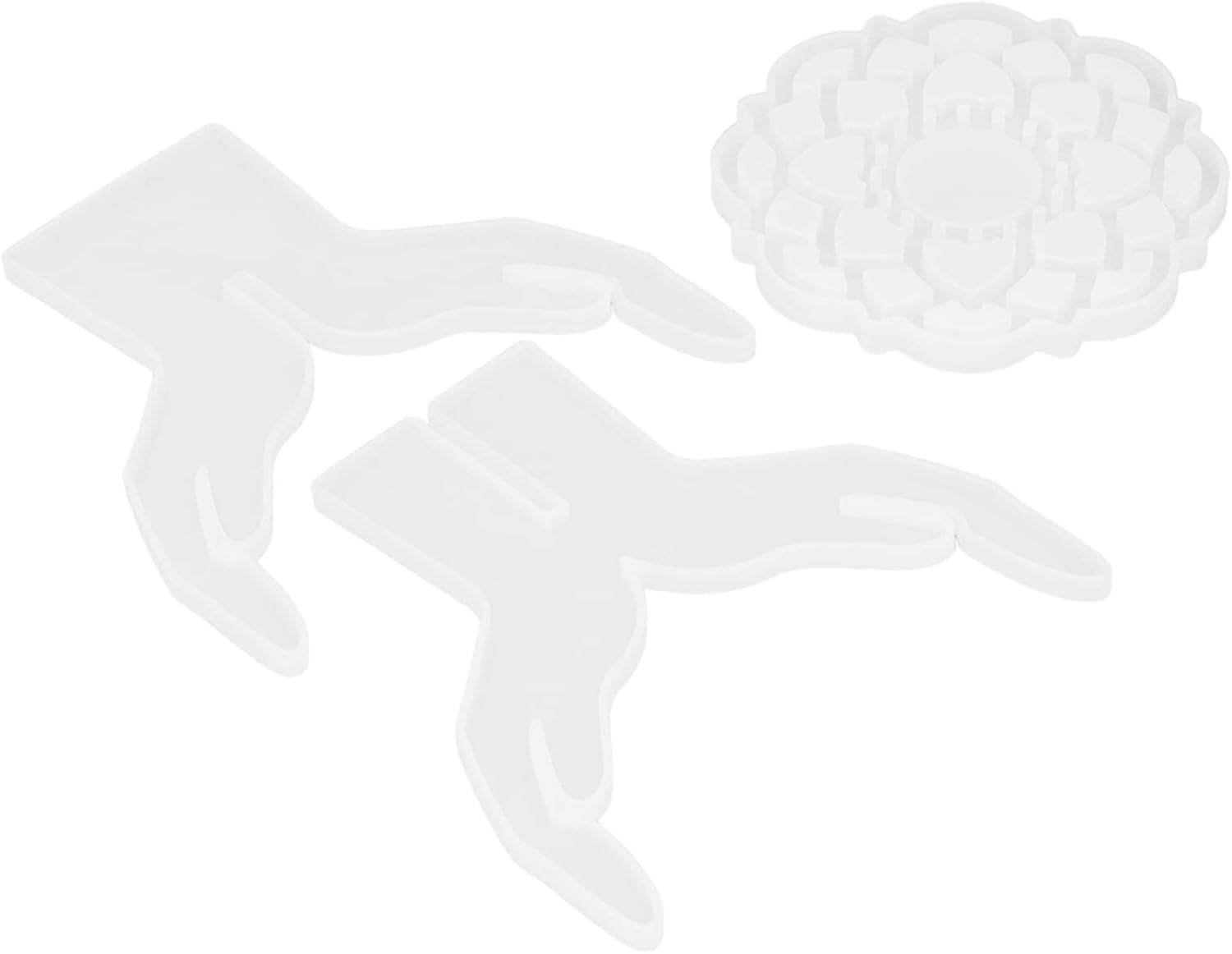 3Pcs DIY Silicone Flower Pot Shelf Mold Easy Demoulding Unique Shape Suitable for Resin Crafts (Double-Hand Hollow Cushion Mold 60-743)