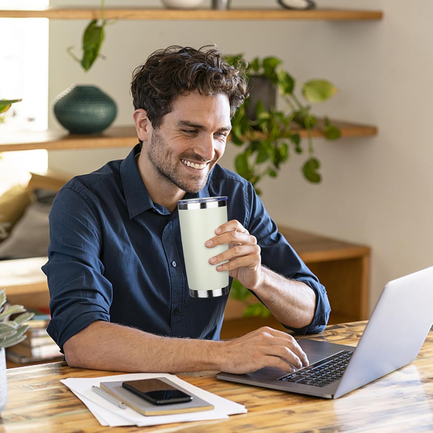- Fits Most Cup Holders: 20oz coffee travel mug body height is 6.69",the drink-through lid diameter is 3.38". It also fits in the most car drink holder, Carry around your beverages whether home, office, picnic, hiking or camping adventures