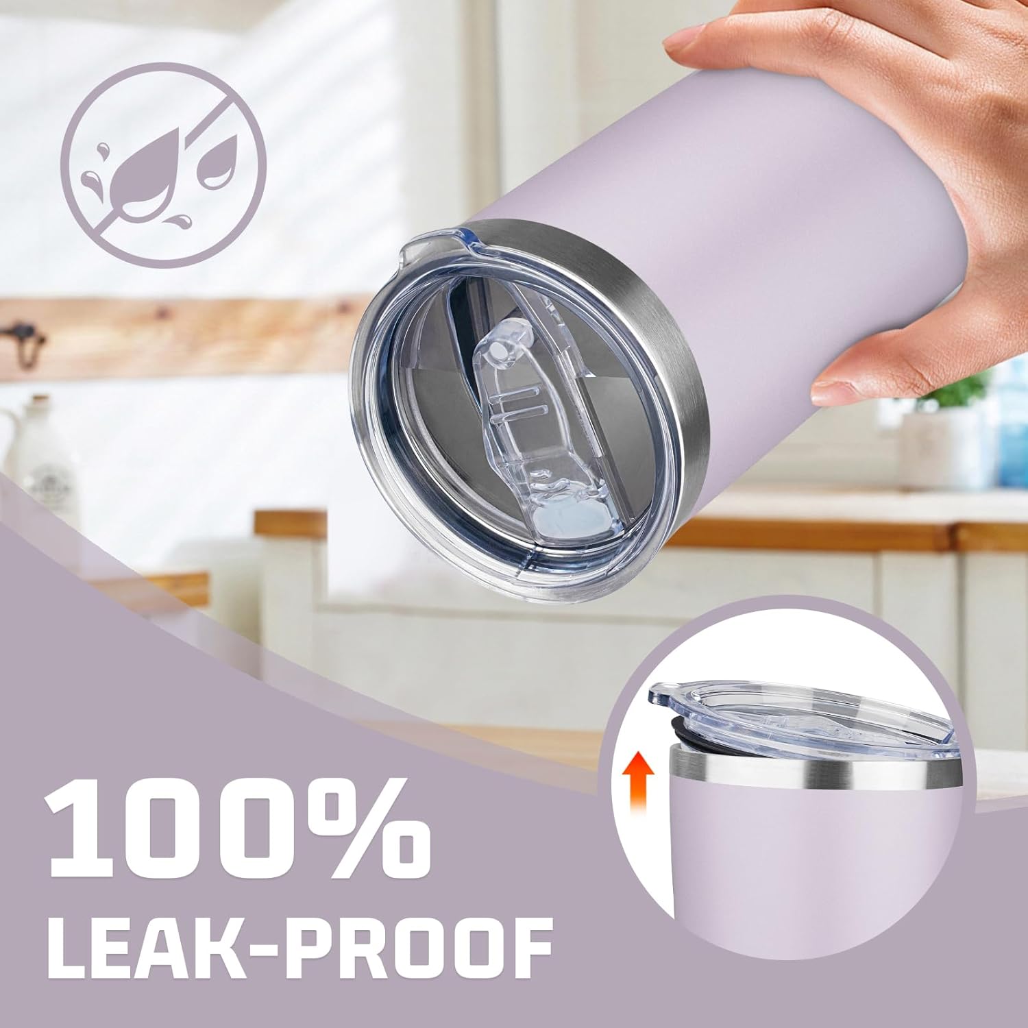 - โ ๐๐๐-๐ ๐๐๐ ๐๐ง๐ ๐๐๐๐ค-๐ฉ๐ซ๐จ๐จ๐ ๐๐ข๐: The 20 oz insulated coffee mug is equipped with a sliding lid which is BPA-free and healthy and the seal ring of the lid fits snugly into the mouth of the cup. When the sliding lid is closed, you don't have to worry about spilling your drink, even if the coffee tumbler is accidentally tilted.Our 20oz tumbler with lid for your daily or travel drinking needs, always hydrated.