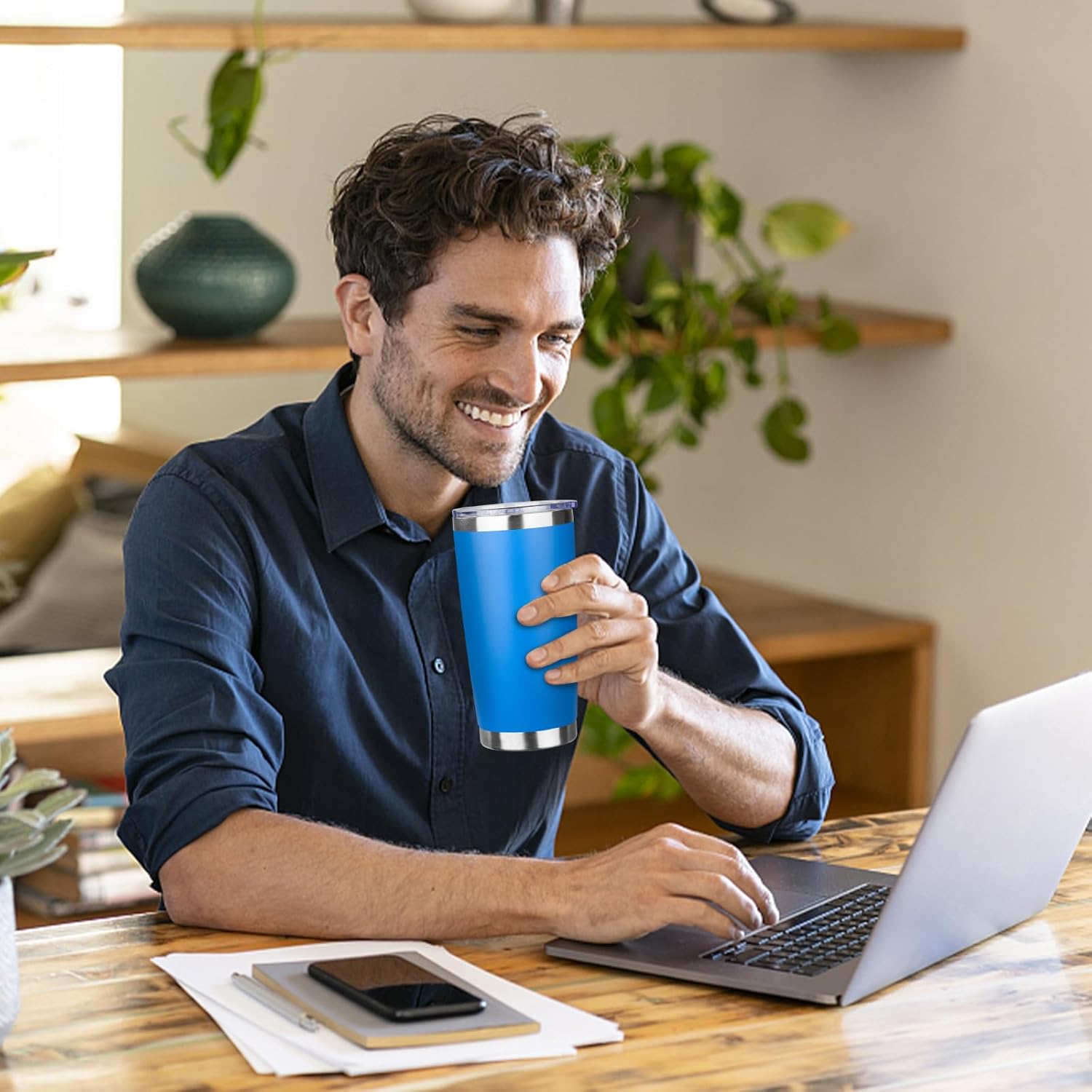 20oz Tumbler Bulk with Lid and Straw, Stainless Steel Double Wall Vacuum Insulated Travel Mug, Powder Coated Coffee Cups for Hot and Cold Drinks,Funny Gifts for Women Men(Scuba blue,1)