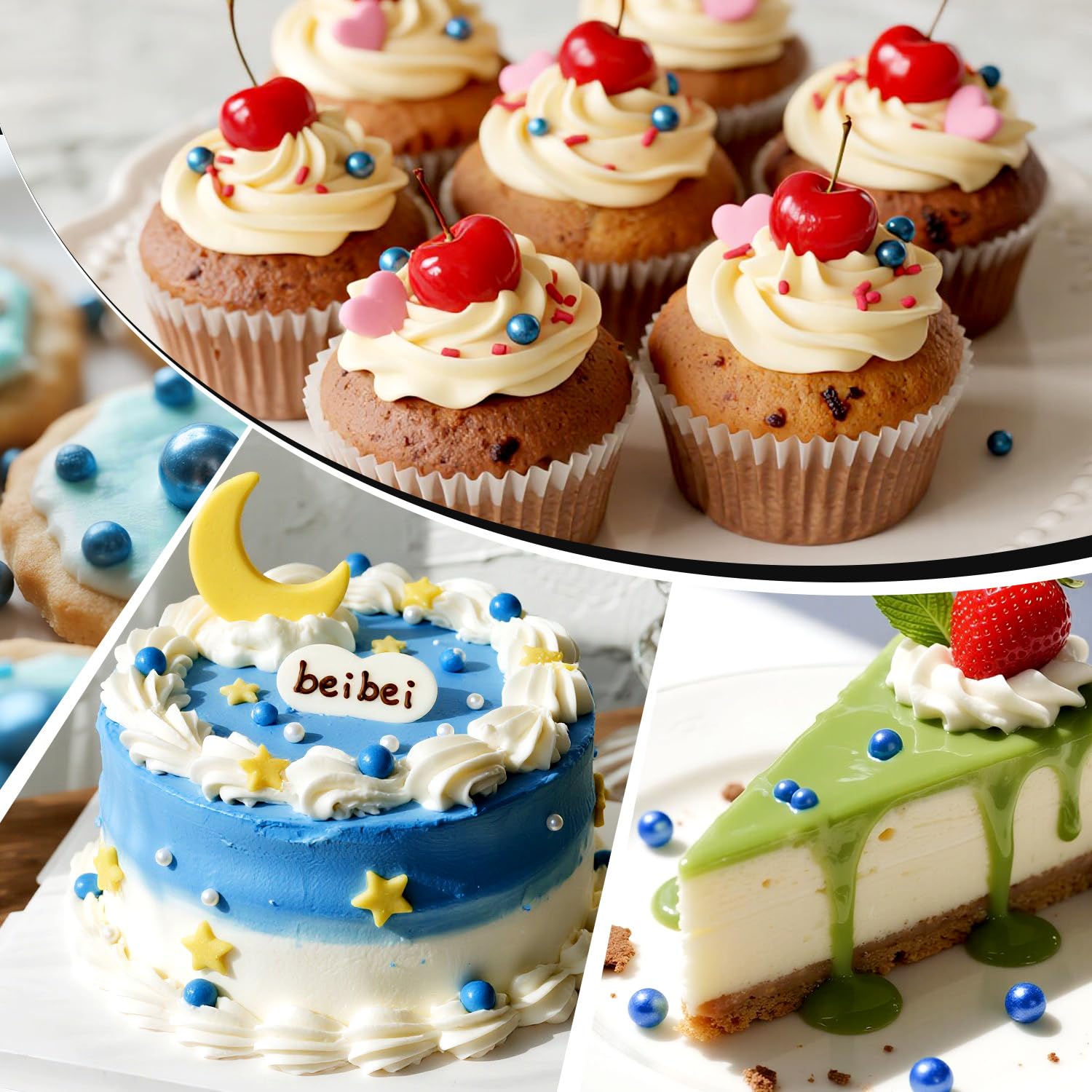 - The Edible Deep Blue Pearl Sprinkles feature a unique mixed-size design. They are perfect for birthday cakes, cupcake toppers, cookies, ice creams, waffles, and any dessert. These sprinkles will make your baked goods prettier.