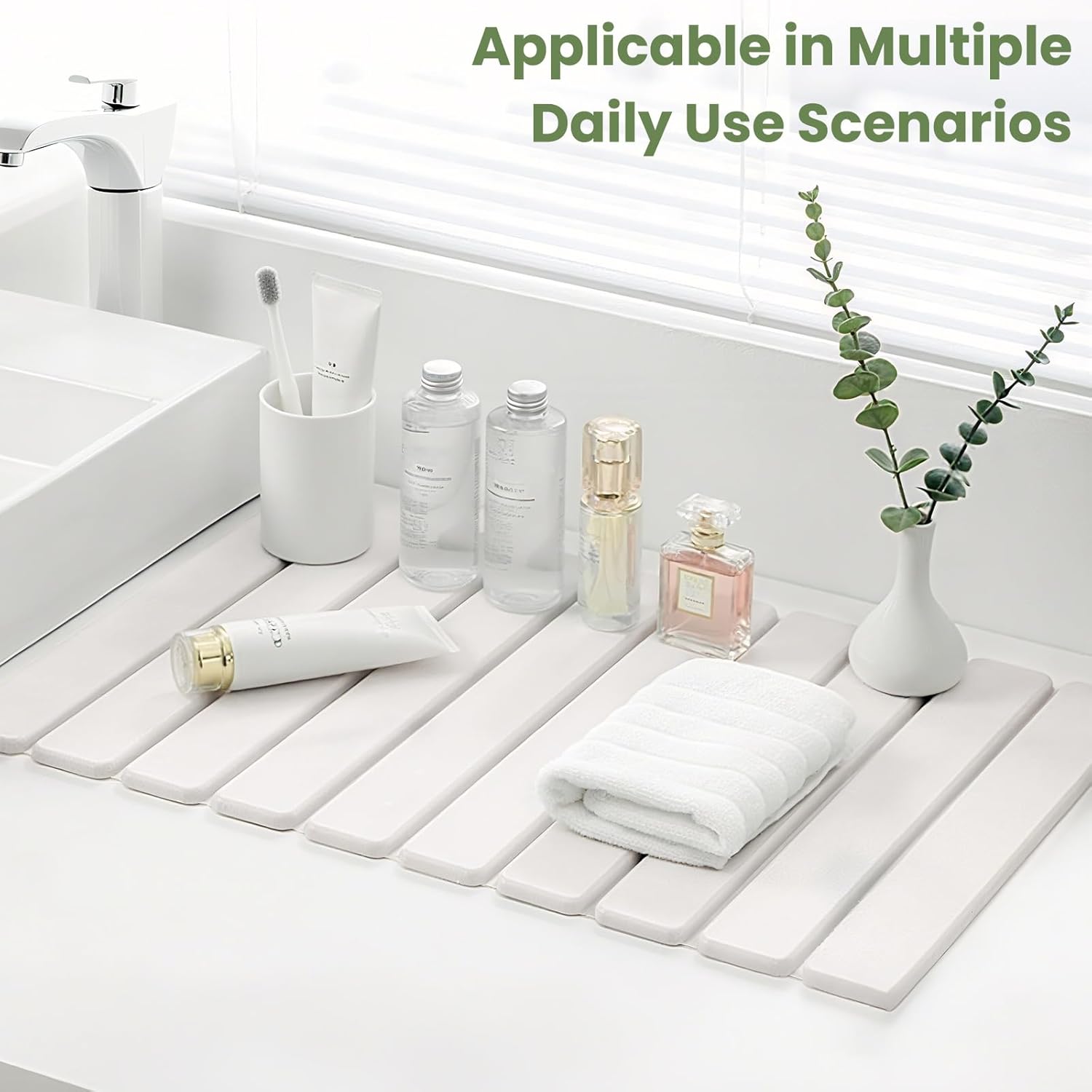 Stone Drying Mat for Kitchen Counter, Roll-Up Stone Dish Drying Mat, Large Fast Drying Kitchen Mat, Diatomaceous Earth Dish Mat Drying Kitchen Mat (White)