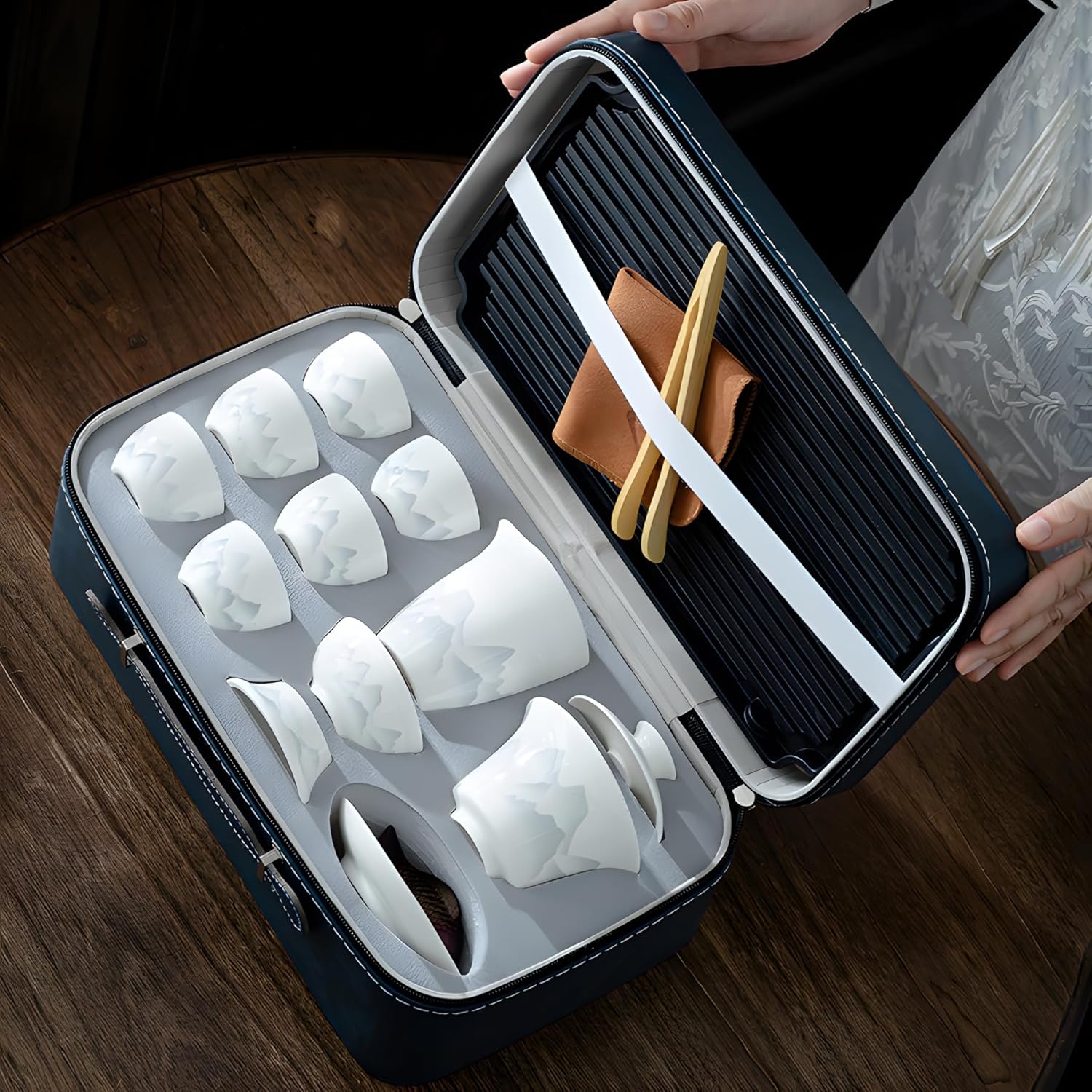 - 【Ideal Tea Gifts Set】This ceramic gongfu tea set serves as an exquisite gift for tea lovers. Perfect for birthdays, anniversaries, Mother’s Day, or corporate gifting, its compact case suits travel, camping, and office use. The stylish presentation box enhances its appeal for weddings, housewarmings, or holiday gifts