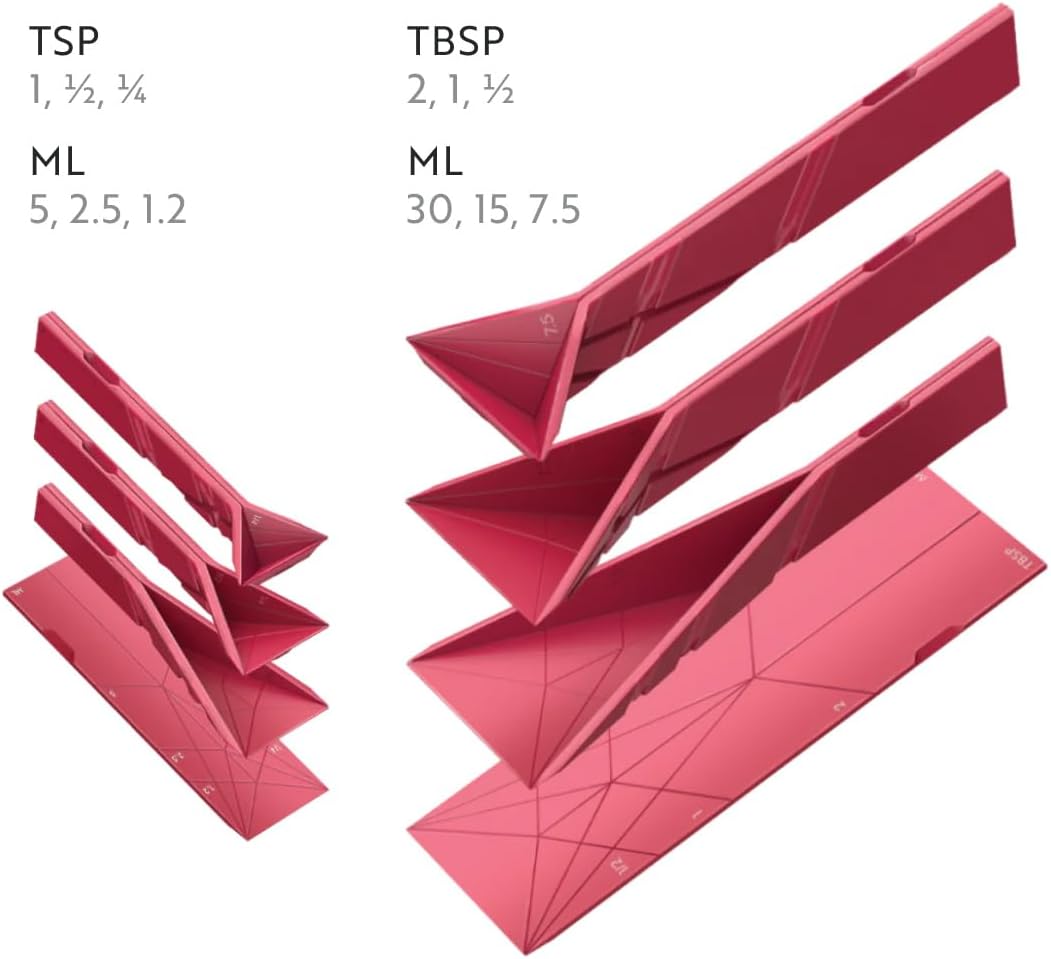 - Flat-Folding Innovation: The original Polygons Folding Spoon folds completely flat, making it the ultimate collapsible measuring spoon for compact storage in drawers, on hooks, or magnetic strips—no clutter, no hassle.