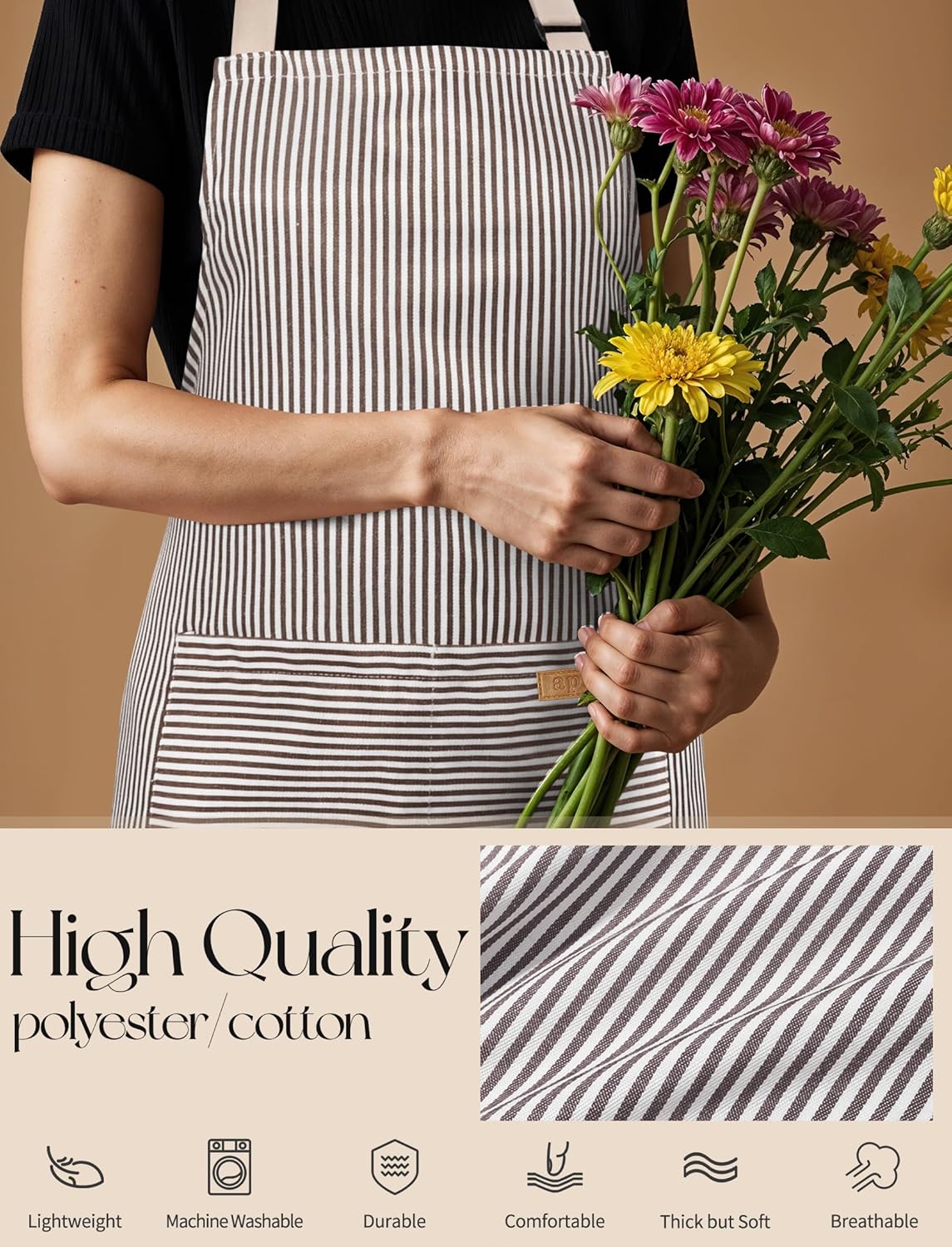 • PREMIUM MATERIAL: This apron with pockets is made of high quality polyester/cotton color woven fabric, which is thicker and more durable than ordinary polyester/cotton fabric, but soft and breathable, and it is not easy to fade, and the stitching is dense and durable for long time use