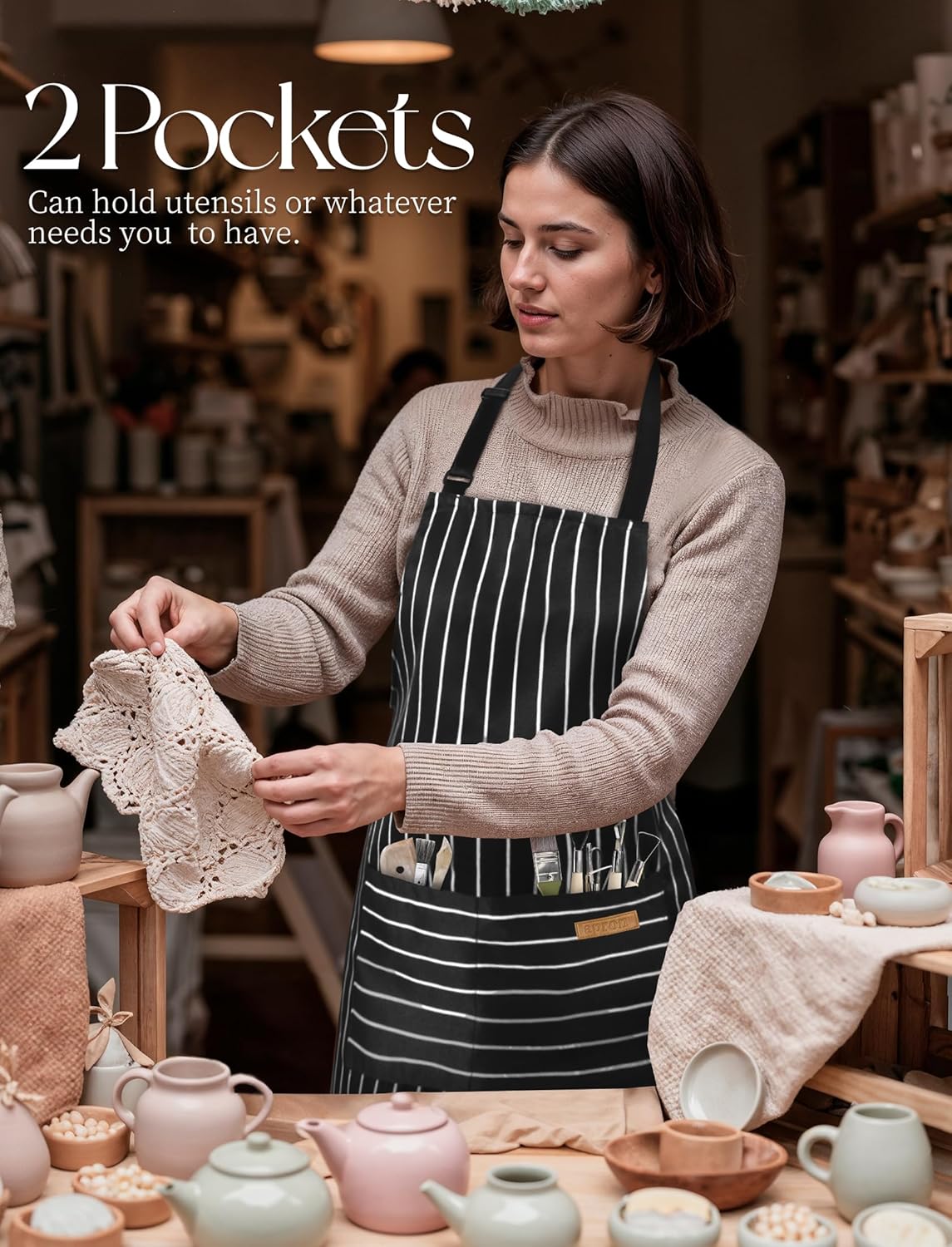 • 2 LARGE POCKETS: Kitchen apron comes with 2 large pockets. You can put your kitchen utensils you want in these pockets or the necessary equipment if you are dealing with painting arts