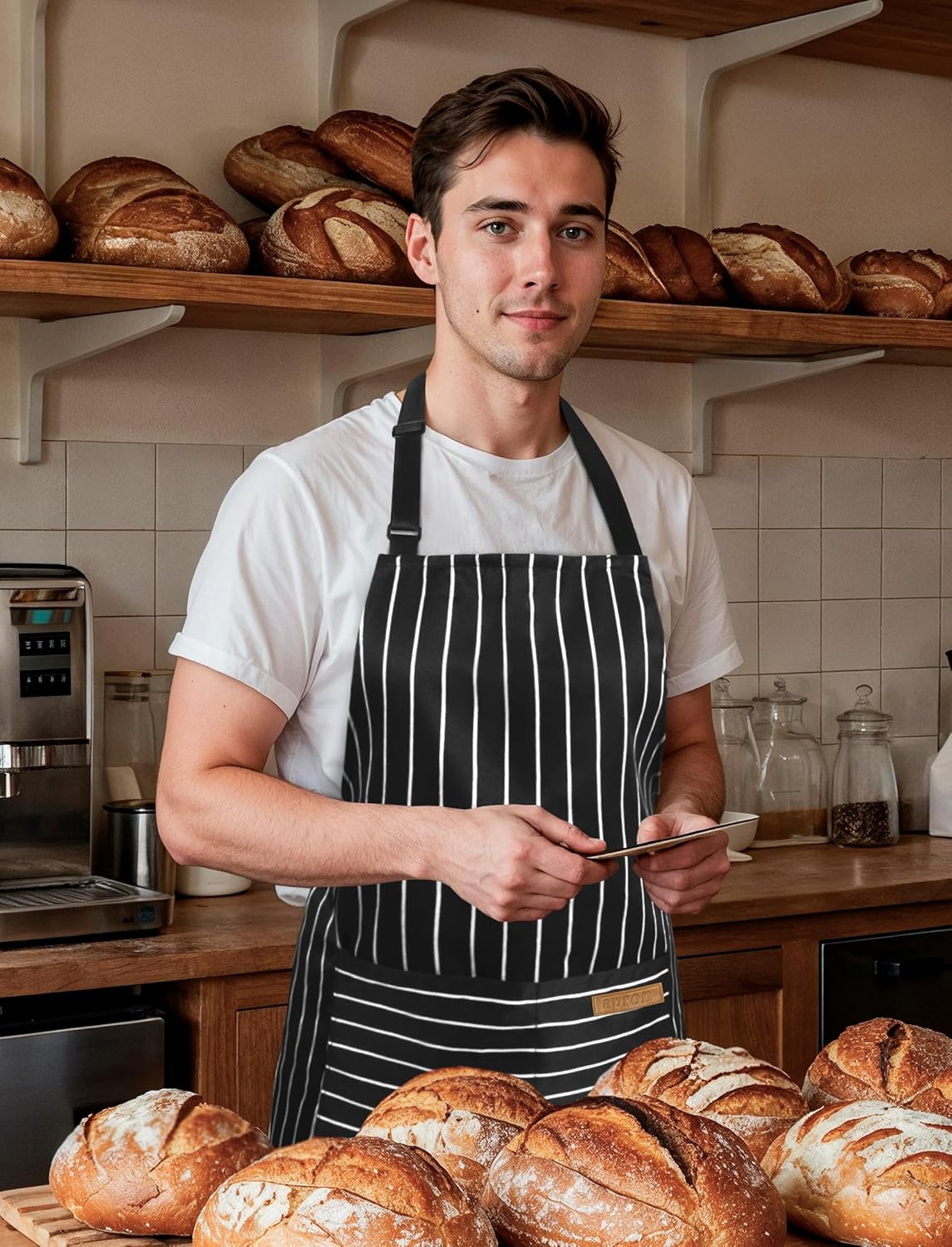 • WIDE COVERAGE: The 29.5” Long x 26.8” Wide large chef apron provides full coverage from chest to below the knee. You can use these aprons for cooking in the kitchen, barbecuing in the garden or working on your painting art protects you from all kinds of hot oil, water drops or other stains