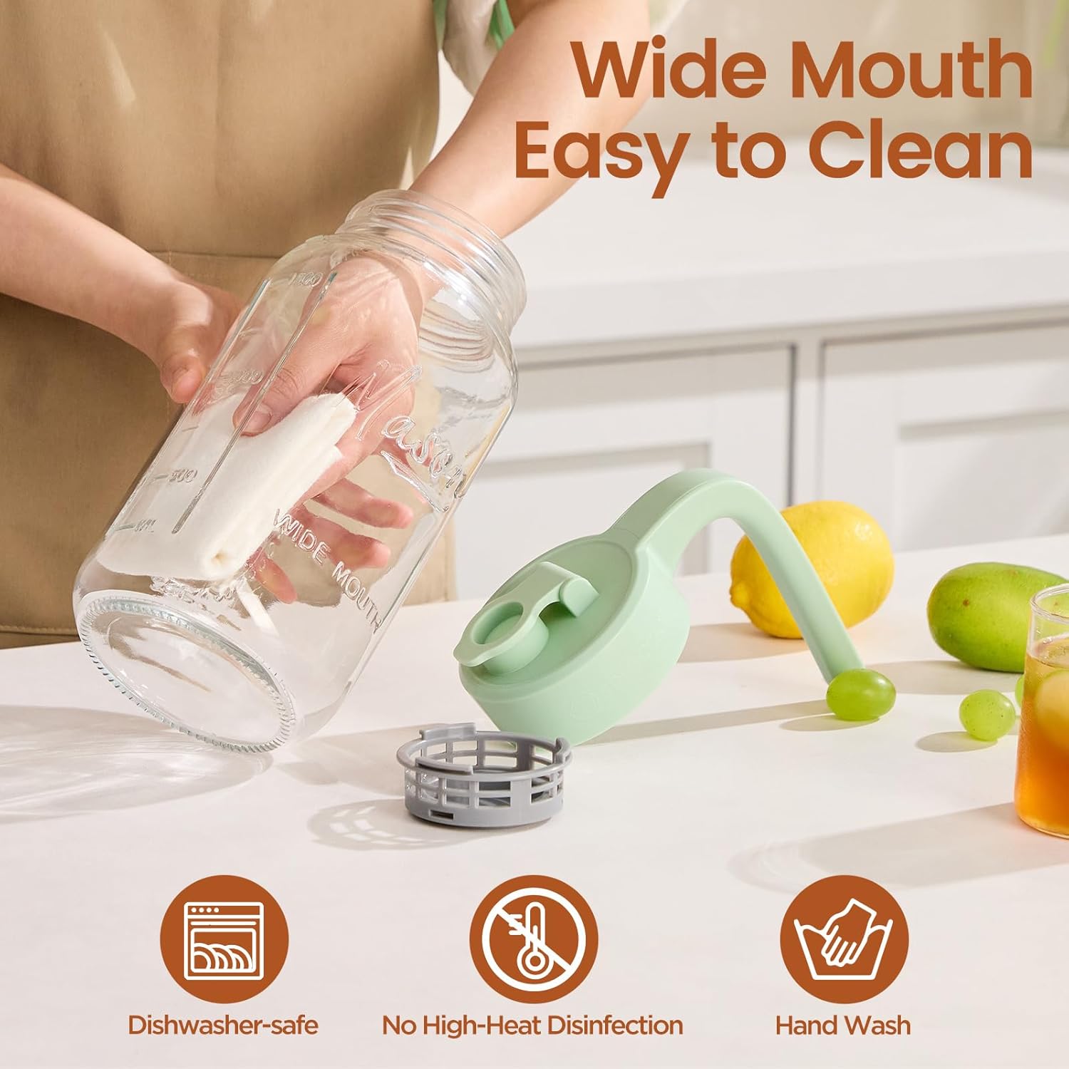 - Airtight & Leakproof Storage: Our Mason Jar Pitcher’s silicone seal locks in freshness and prevents leaks, keeping your contents secure—whether in the fridge, on the counter, or in the pantry. Enjoy hassle-free, mess-proof storage every time.