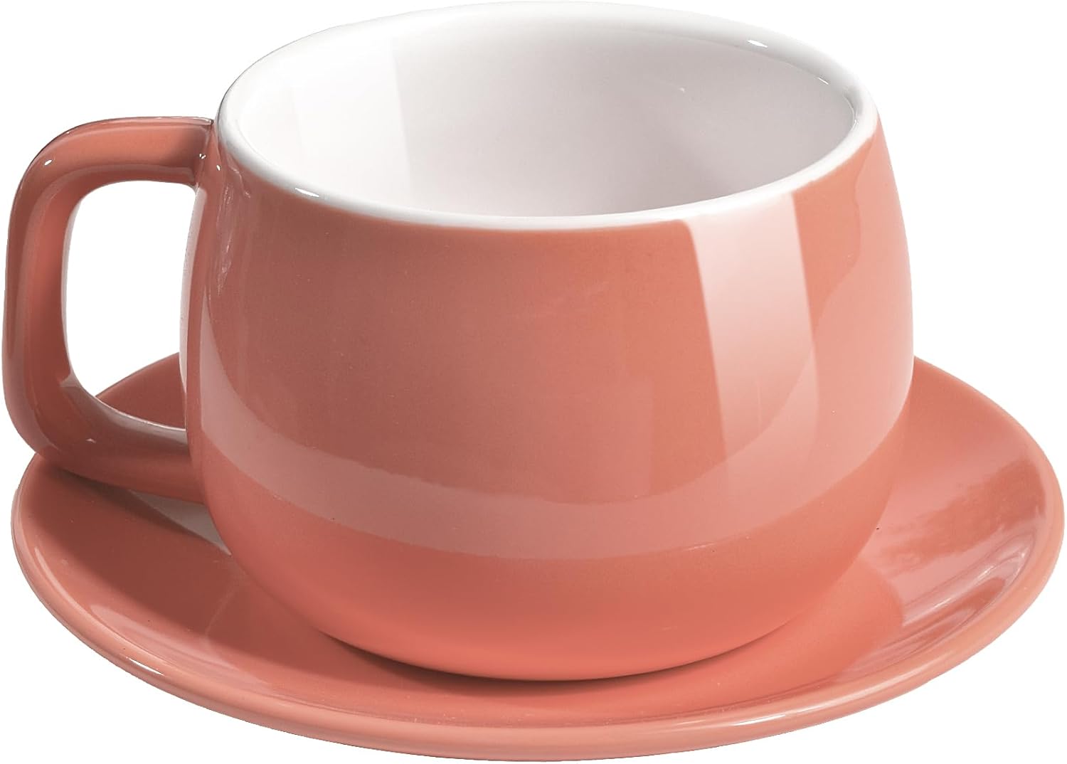 Porcelain Coffee Cup with Saucer 270ml/9oz, Minimalist Design, Perfect for Latte, Cappuccino, and Tea, Pink
