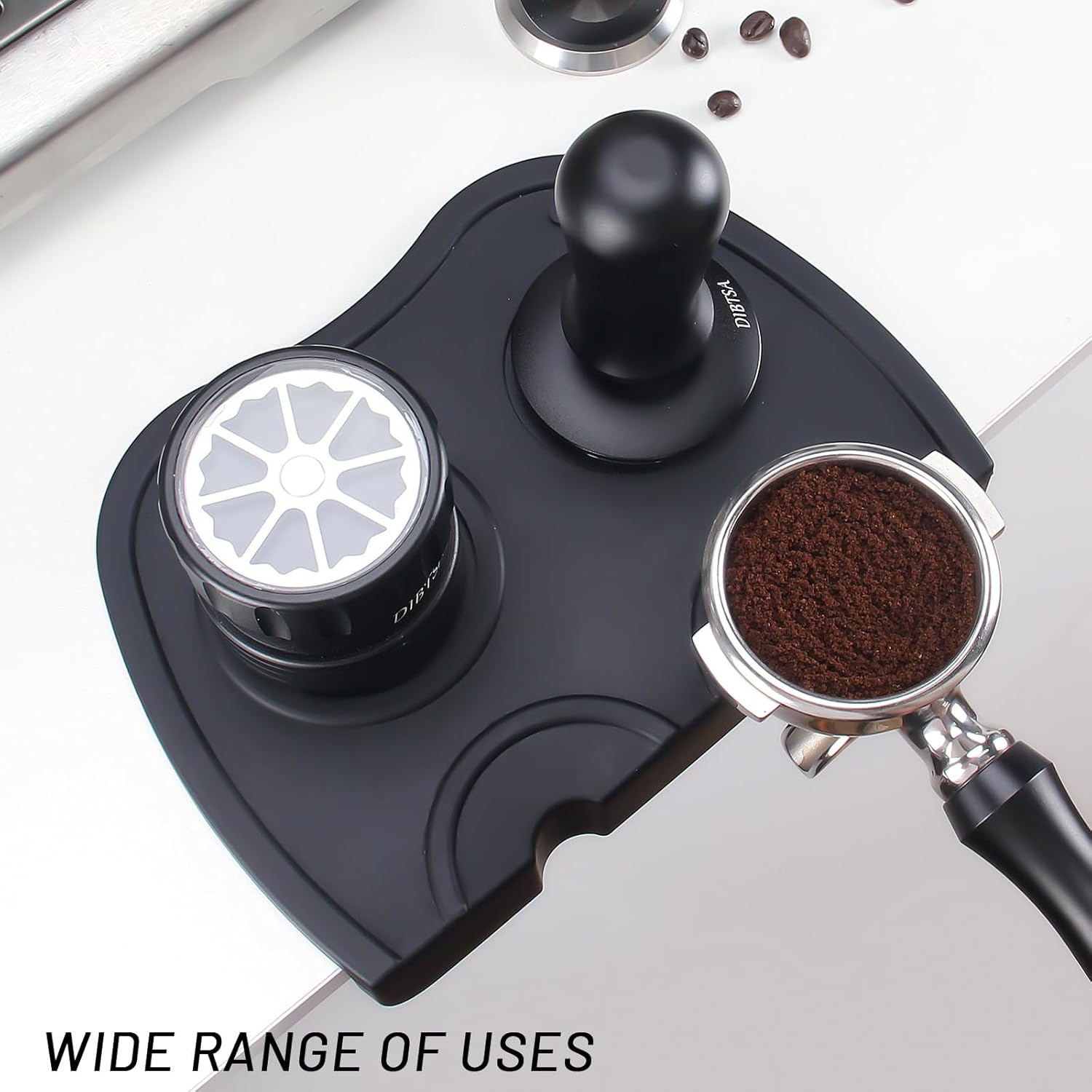 Espresso Tamping Mat, Silicone Coffee Tamper Mat with Corner Edge Tamp Support Station for Countertop, Barista Tools, Espresso Accessories, Large, Black