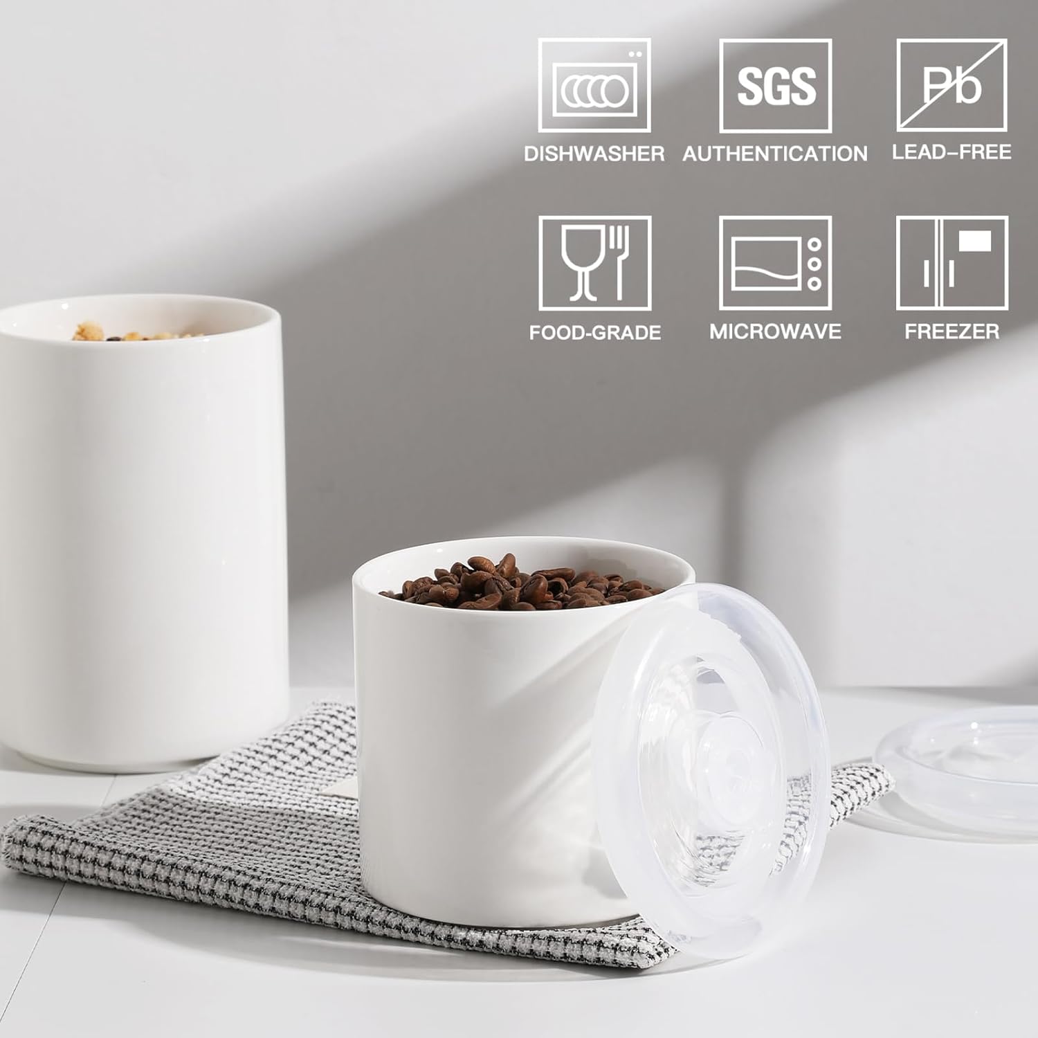- Premium Safe Materials - The storage jar is fired from high-temperature ceramics and has a smooth colored glaze coating on the surface, making it easy to clean and suitable for dishwashers. The lid is made of food-grade plastic and can be placed in the microwave oven together with the jar.