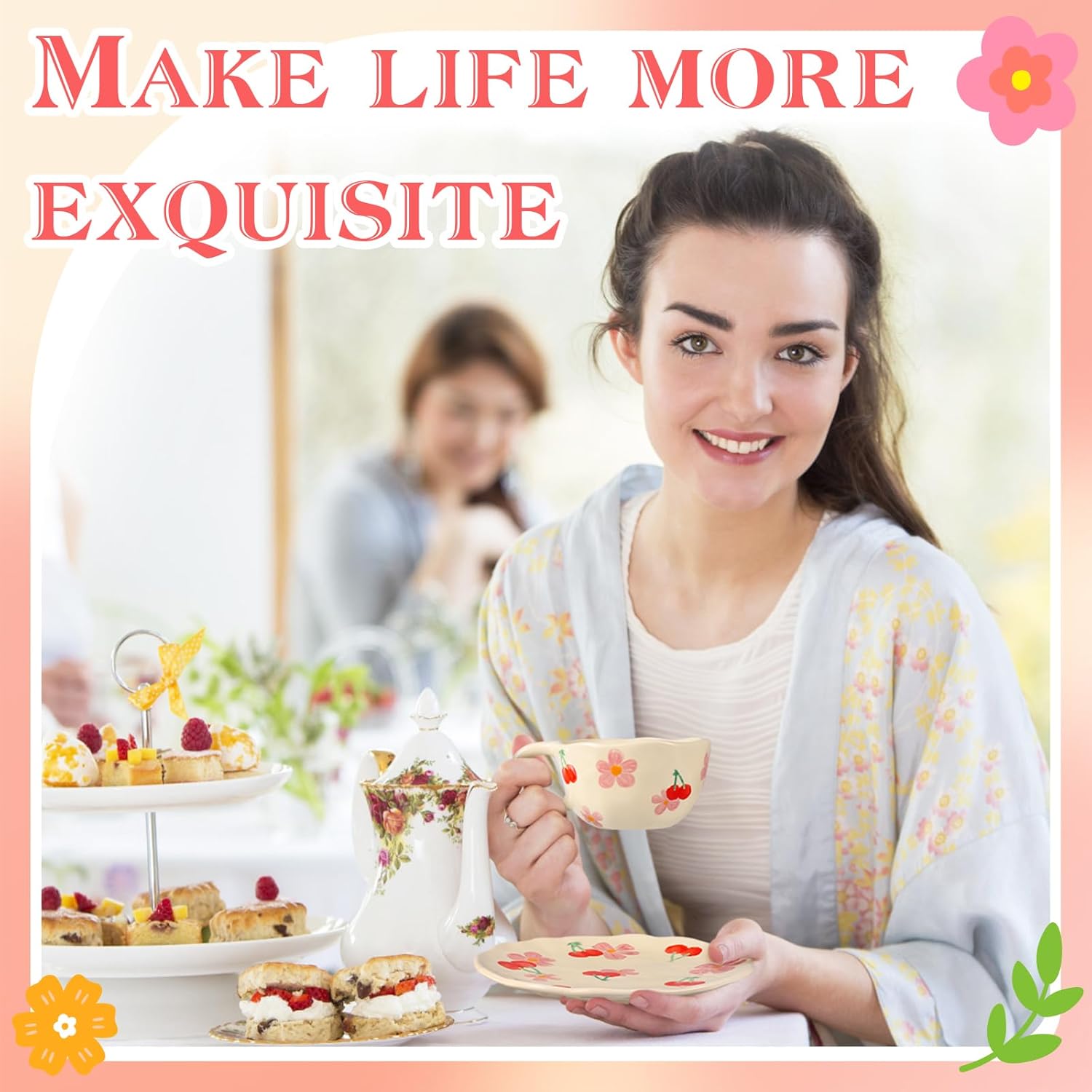 - Color : Pink Cherry with Saucers