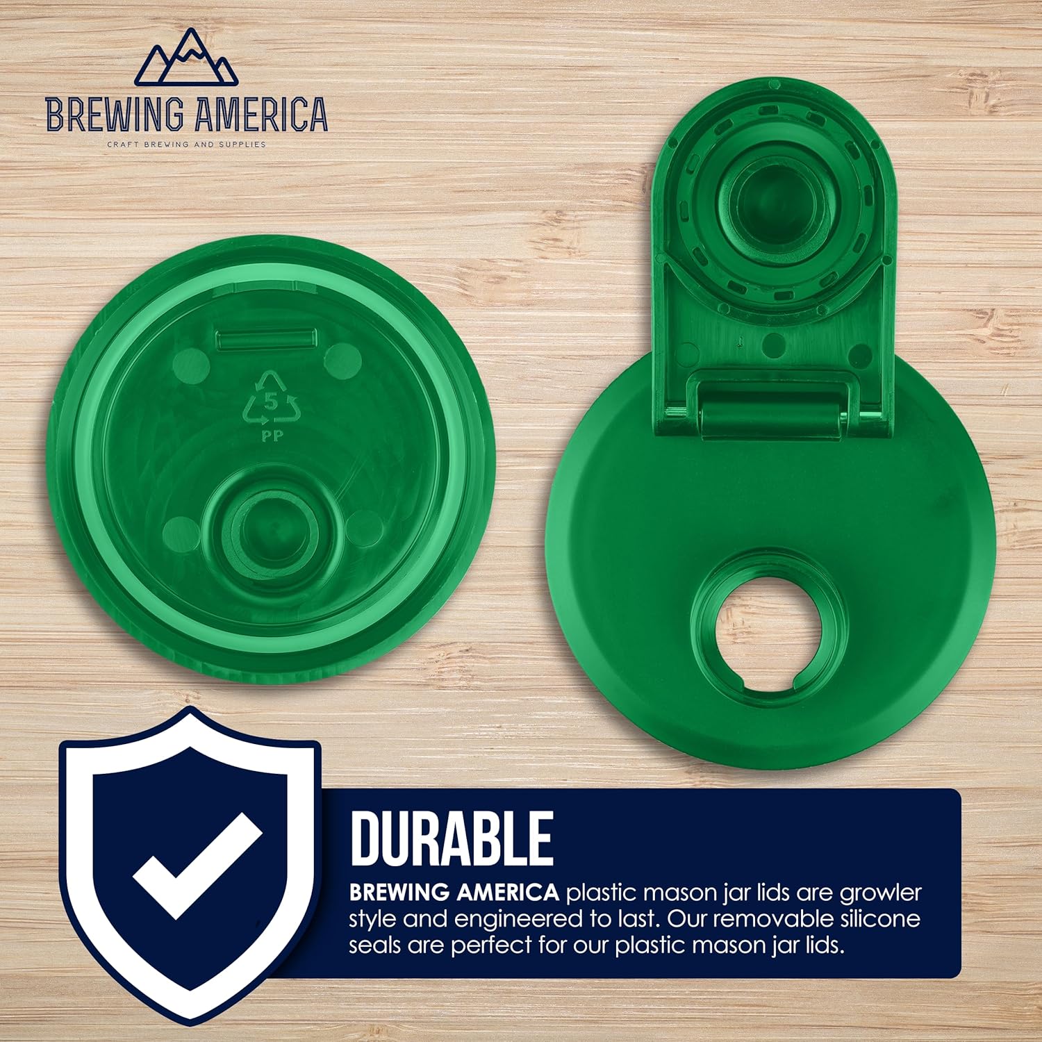 Brewing America Mason Jar Drinking Cup Pint and Half Drinking Lid and Azure 24oz Jar (2, Tractor Green)