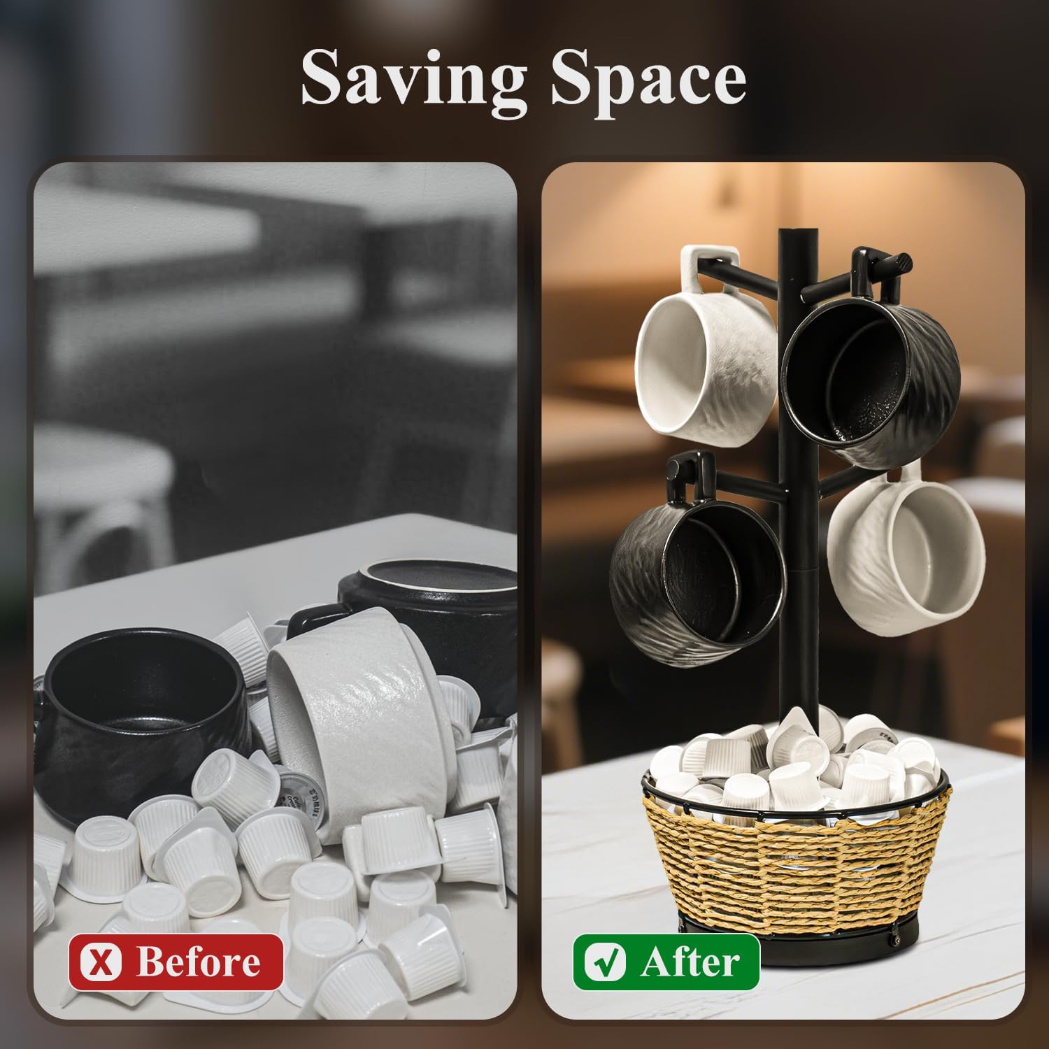 - 【Unique Design】More than just a functional coffee mug holder, this minimalist yet high-quality piece adds a stylish touch to your home decor. The woven basket design brings a charming rustic vibe to your space—perfect for your coffee station or kitchen.