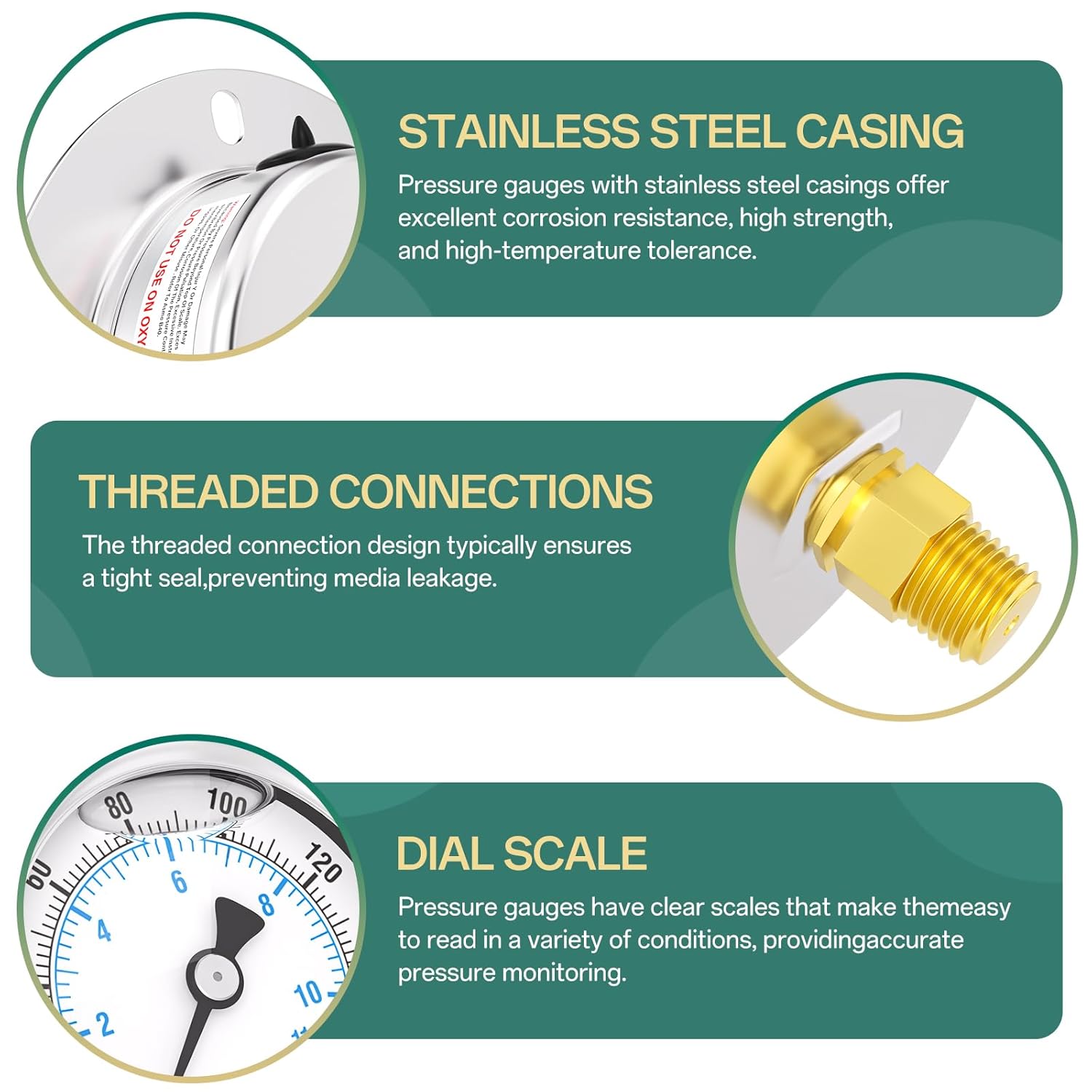 - [SIZE] 2.5" dial size, 1/4" MNPT Back Mount
