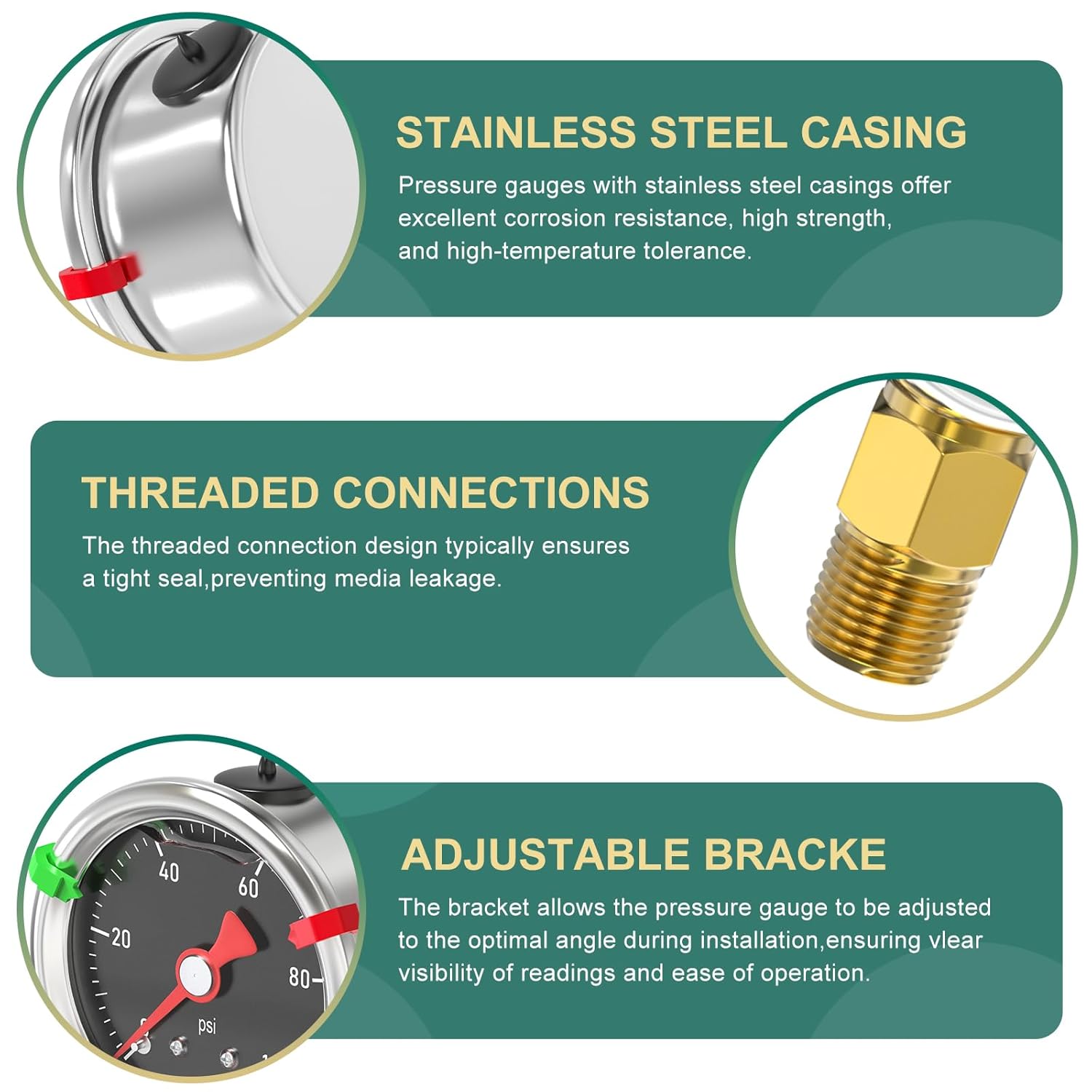 - [PRODUCT NAME] Stainless Steel Liquid Filled Pressure Gauge