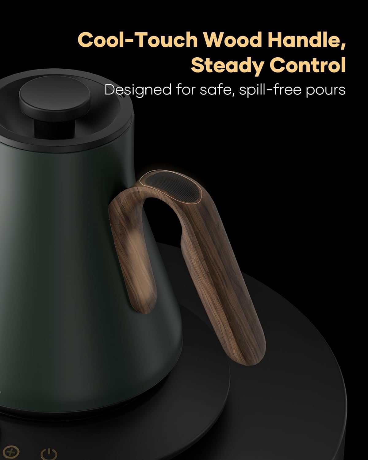 Cocinare FLOW B9 Gooseneck Electric Kettle, Precise Temperature Control for Pour-Over Coffee & Tea Brewing, Stainless Steel Interior, Rapid Heating for Boiling Water 1500W/0.9L (Green Wooden)