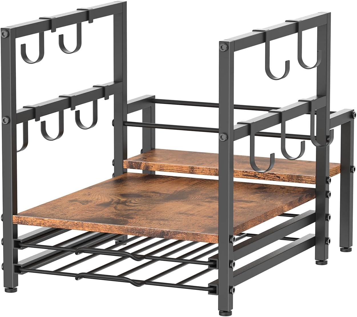 - Coffee Pod Holder with Versatile Storage Rack: The top holds the coffee machine, while the back shelf is ideal for storing syrups and cups, complemented by 2 metal sliding drawers for k cup holder and 8 movable hooks for convenient mug hanging, ensuring optimal space utilization