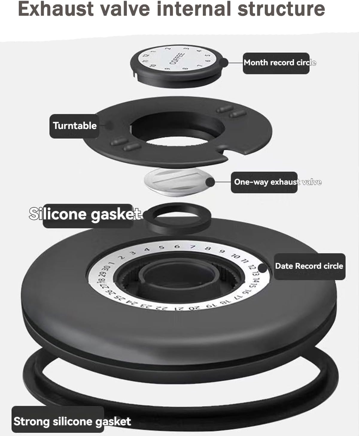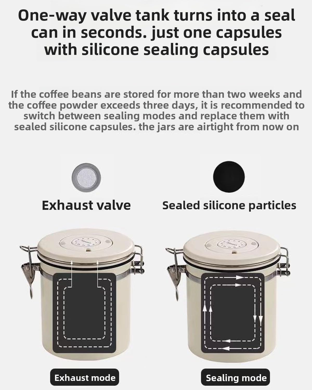 - Widely Used: The Food Container can not only store coffee beans but also coffee grounds, tea, sugar, salt, snacks, cookies, etc. It is suitable for various occasions such as coffee shops, homes, offices, kitchens, etc. For items needing ventilation, use the standard one-way CO2 valve (Exhaust Mode). For long-term storage, replace the valve with the included silicone gasket for a tighter seal (Sealed Mode)