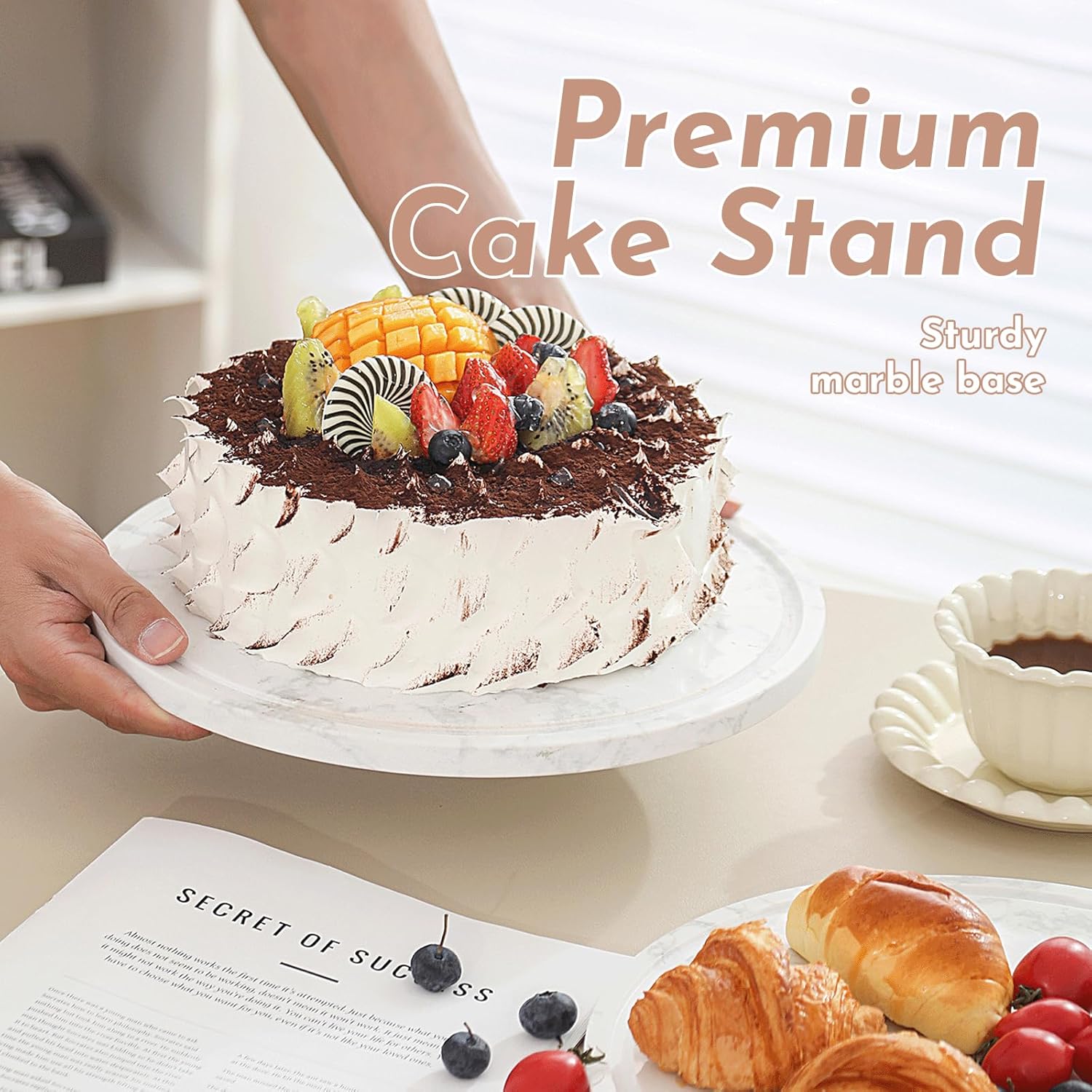 - Premium marble base:Crafted from high-quality marble, this cake stand offers a sturdy and elegant foundation for displaying your desserts. The natural veining adds a touch of sophistication to any table setting, making it perfect for cake stands for party celebrations, elegant cake displays, or a cake stand with dome.