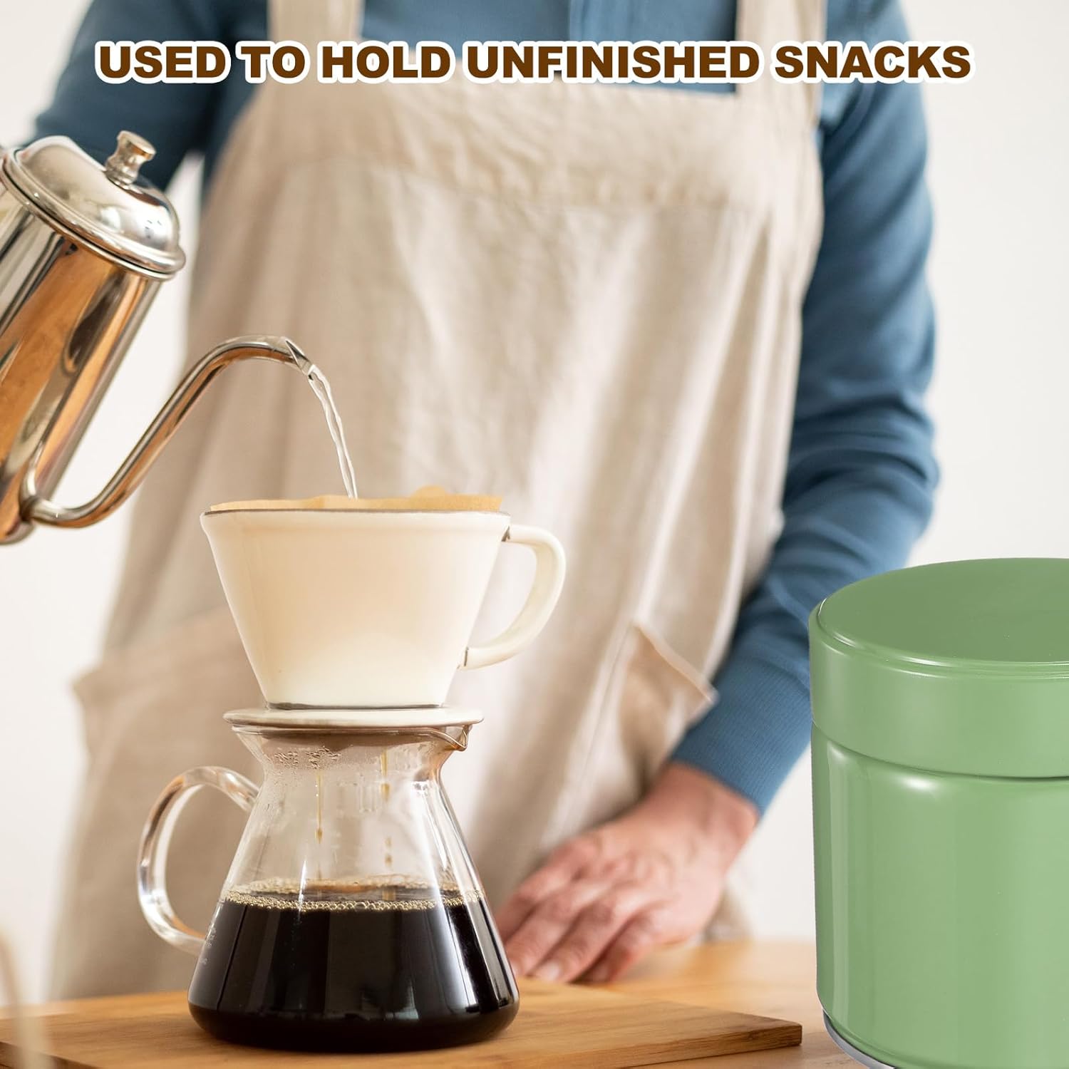 uxcell 2Pcs Round Tea Canisters, 4" x 4" Airtight Metal Tea Containers for Loose Tea, Coffee Beans, Spices - Durable, Compact, and Stylish Storage Tea Tin (Silver Green)
