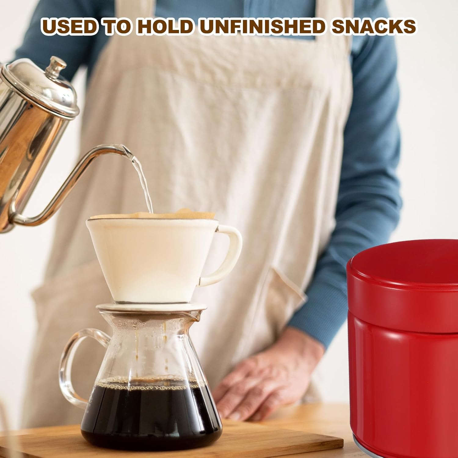 uxcell 2Pcs Round Tea Canisters, 4" x 4" Airtight Metal Tea Containers for Loose Tea, Coffee Beans, Spices - Durable, Compact, and Stylish Storage Tea Tin (Red)