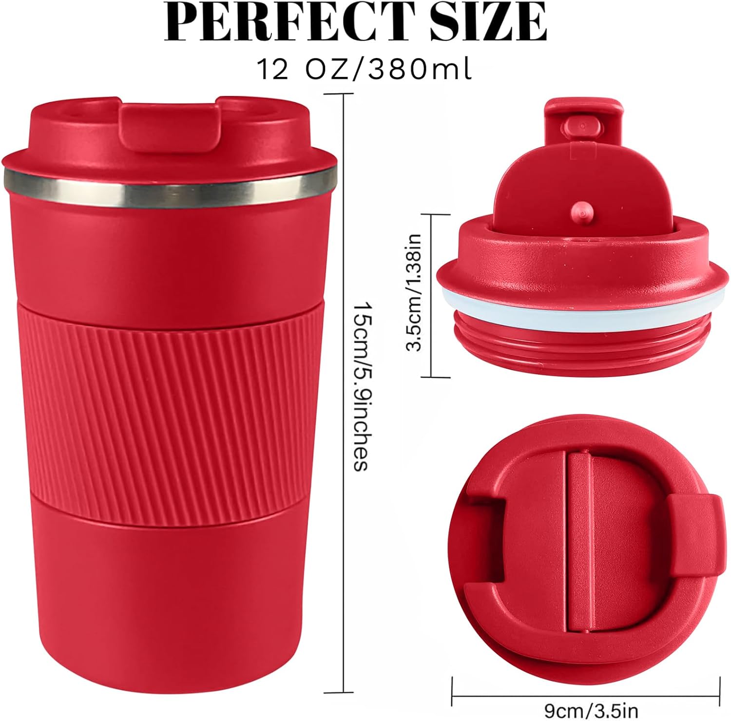 YINBAOGE Insulated Travel Coffee Mug Spill Proof Leak Proof Pobtable To Go Camping Stainless Steel Coffee Tumbler Reusable Coffee Cups with Lids Thermos for Hot and Cold Drink (Red, 12 OZ)