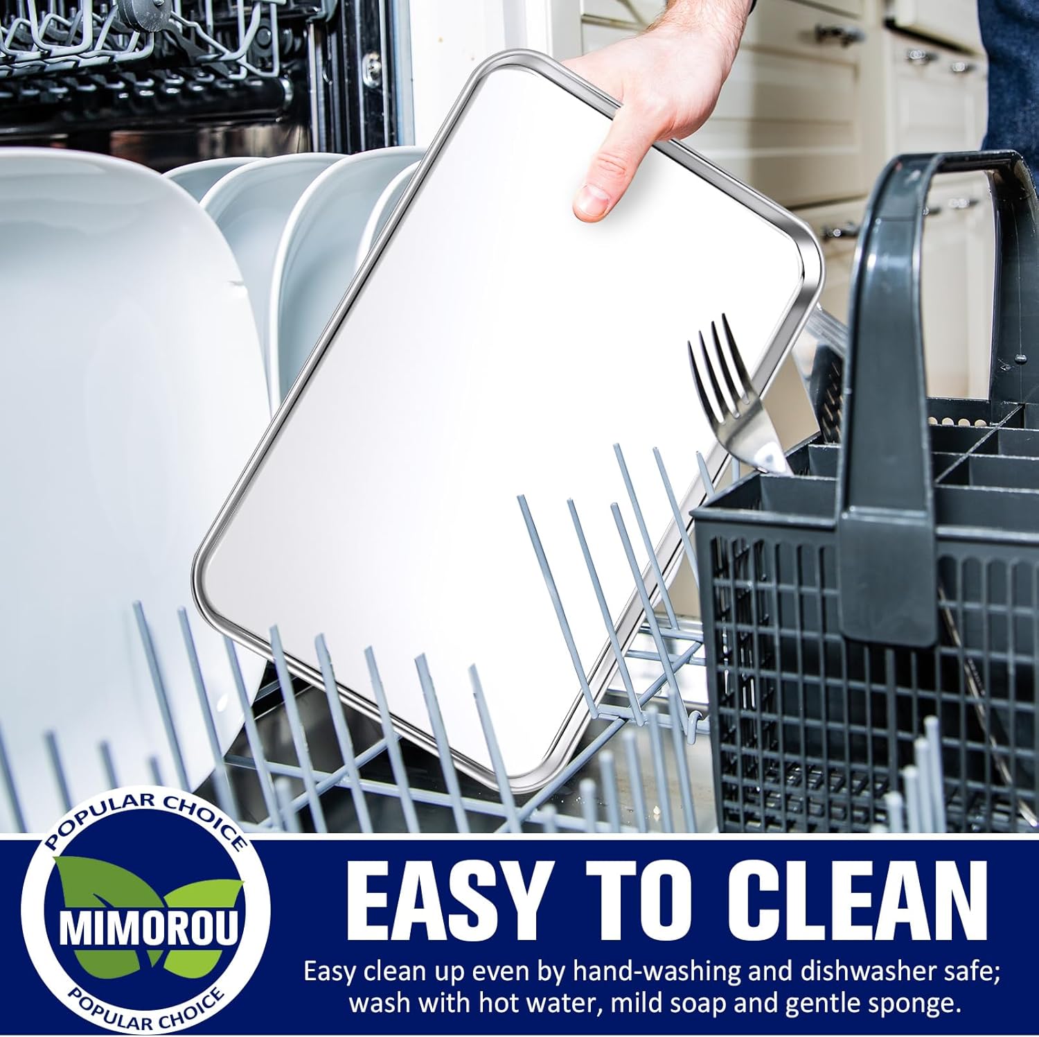 Mimorou 12 Pcs Baking Sheet Stainless Steel Cookie Sheet Small Metal Pans Professional Rectangle Oven Trays Kitchen Baking Cooking Oven and Toaster, Dishwasher Safe(8 x 5.9 Inches)