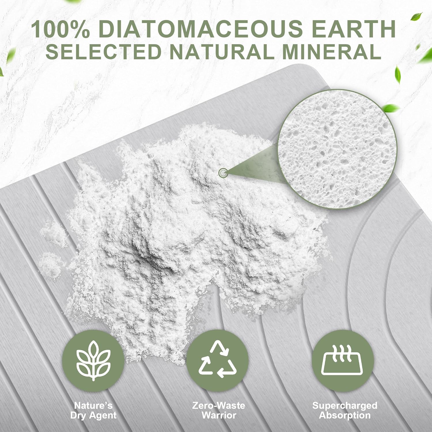- [ECO-CONSCIOUS KITCHEN ESSENTIAL]: The stone drying mat for kitchen counter handcrafted with non-toxic diatomaceous earth and upcycled paper, designed for health-conscious homes. Drying matt kitchen counter combines sustainable with water-absorbing functionality, wrapped in minimalist aesthetics that align with your health life.