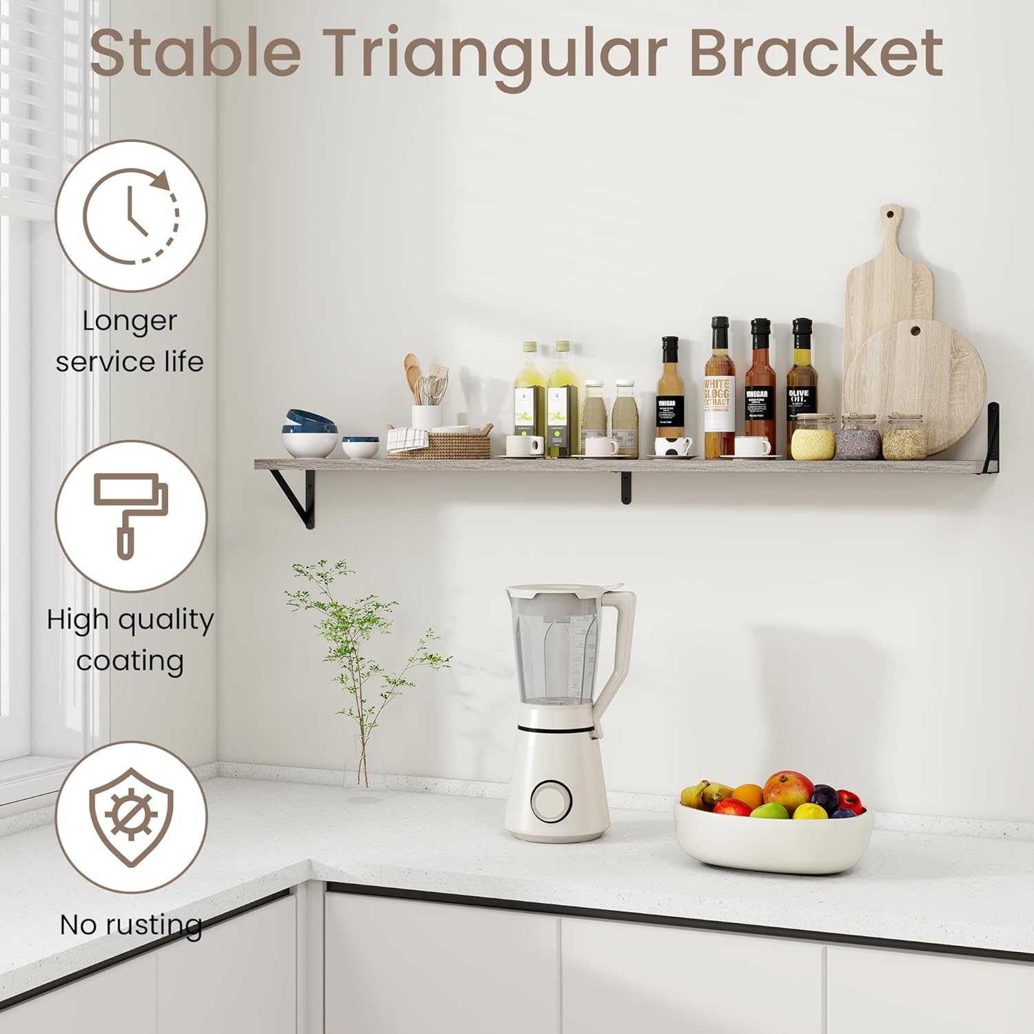 - Sturdy & Durable: These floating shelves are crafted from sturdy particleboard and metal brackets, designed to withstand the test of time. Their robust construction ensures they can support a variety of items without sagging or warping, making them a reliable addition to any home.