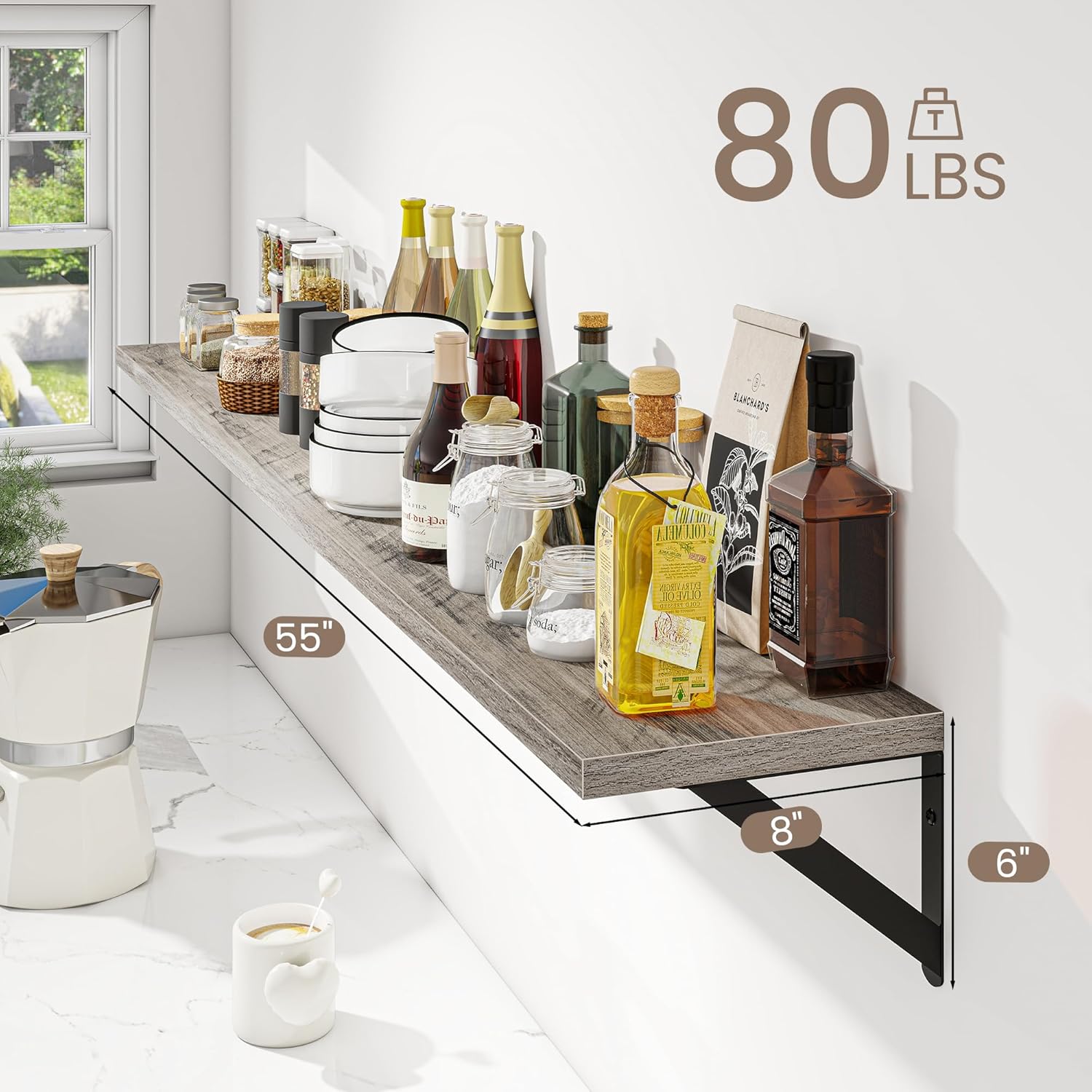 - Large with more Storage: With dimensions of 55 W x 8 D inches, these wall shelves offer ample space for storage and display. Whether you're showcasing your favorite books, photos, or decorative items, you'll find plenty of room to keep your essentials organized and within reach.