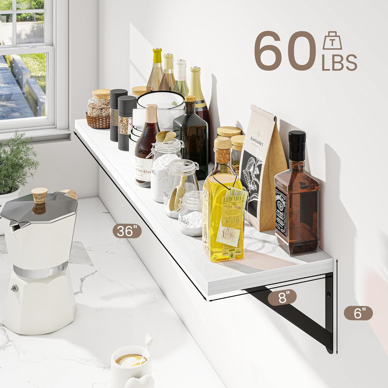 - Large with more Storage: With dimensions of 36 W x 8 D inches, these wall shelves offer ample space for storage and display. Whether you're showcasing your favorite books, photos, or decorative items, you'll find plenty of room to keep your essentials organized and within reach.