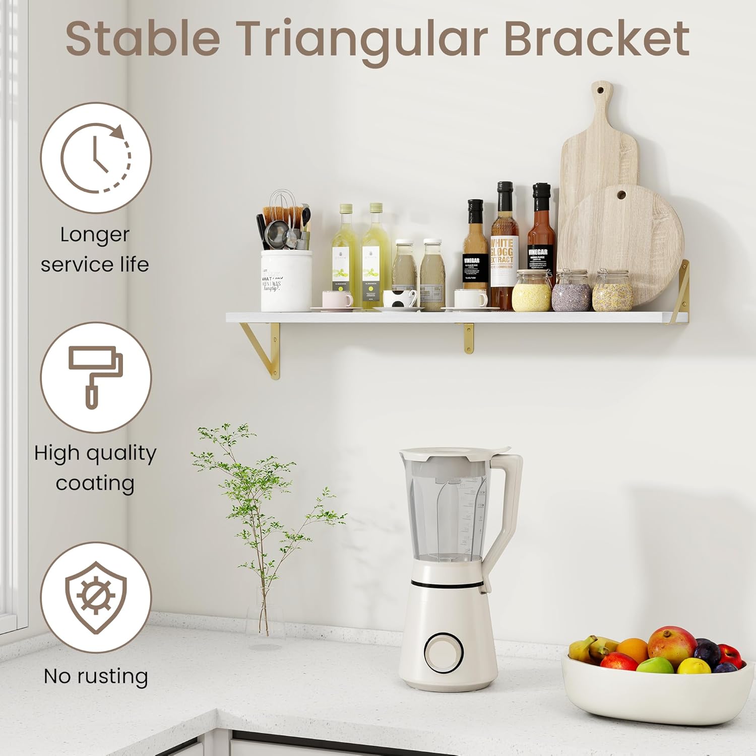 Deep Floating Shelves for Wall, 36W x 8D Wall Mounted Shelves Set of 2, Wide Display Ledge Shelf with Sturdy Metal Brackets for Living Room, Bathroom, Bedroom and Kitchen, White with Gold Brackets