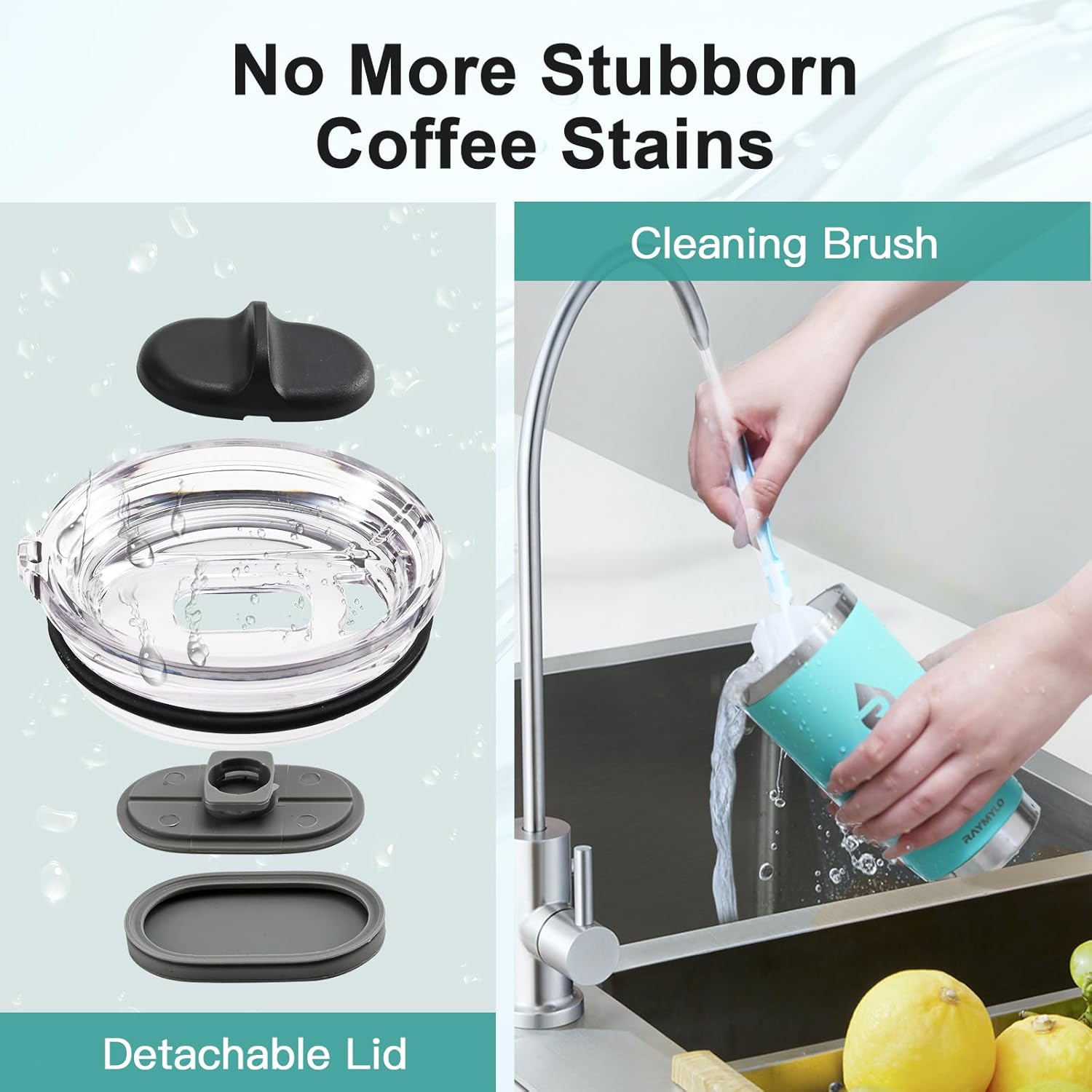 20 oz Coffee Tumbler - Insulated Stainless Steel Travel Mug for Hot/Cold, Spill Proof with BPA-Free Detachable Lid, Coffee Cup Fits Most Car holder, Includes Chic Stickers, Seafoam