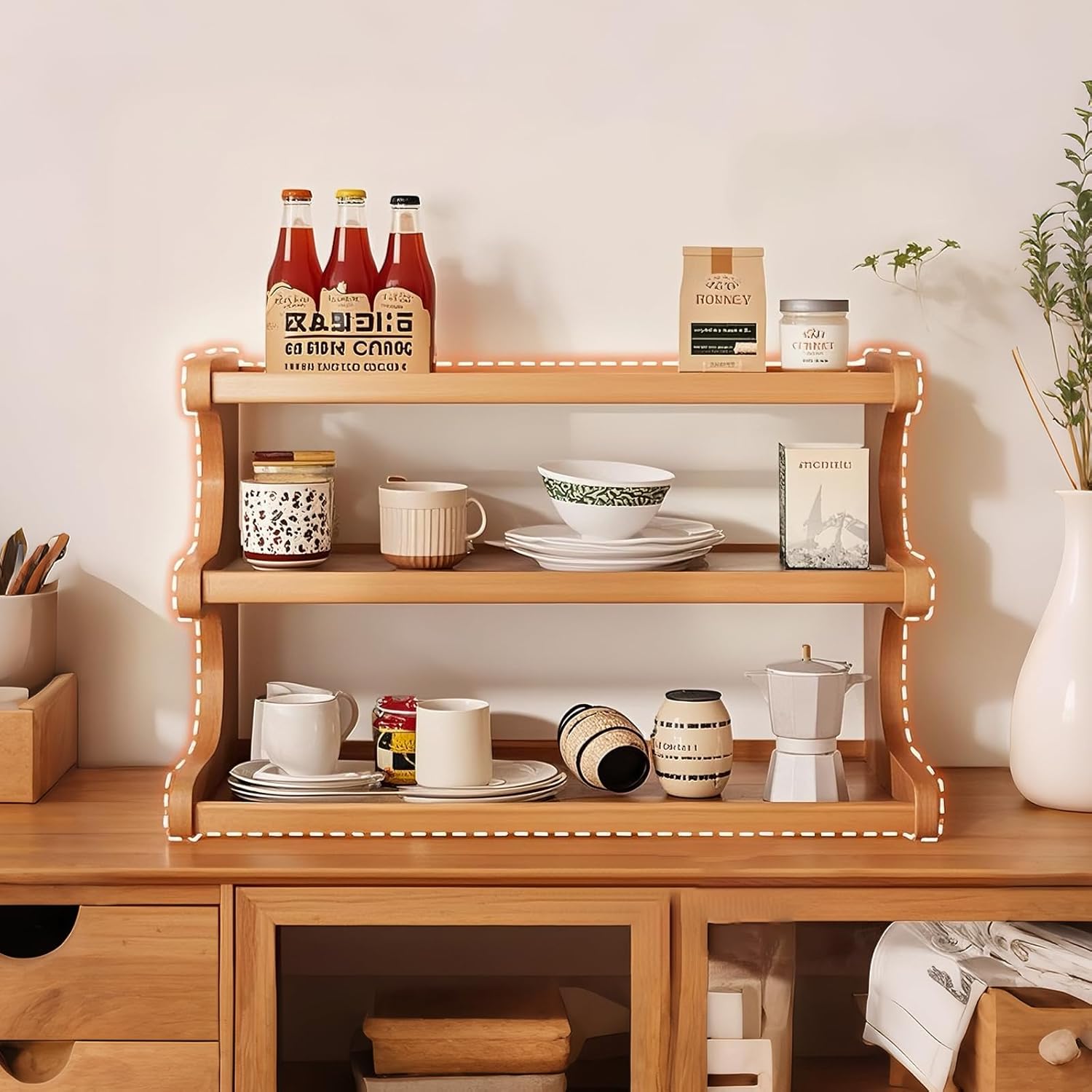 - 【Convenient storage】: The open design of the storage rack increases storage space and makes it easy to access your items, making your cup more belonging. Use as a coffee bar, matcha station, or plant stand. transitions easily from kitchen to patio. Stylish and functional