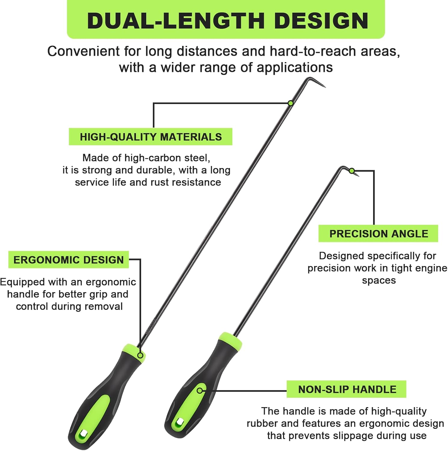 - Dual-Length Design - Includes both long-reach and mini picks for hard-to-reach areas,with ergonomic handles for better grip and control during removal.