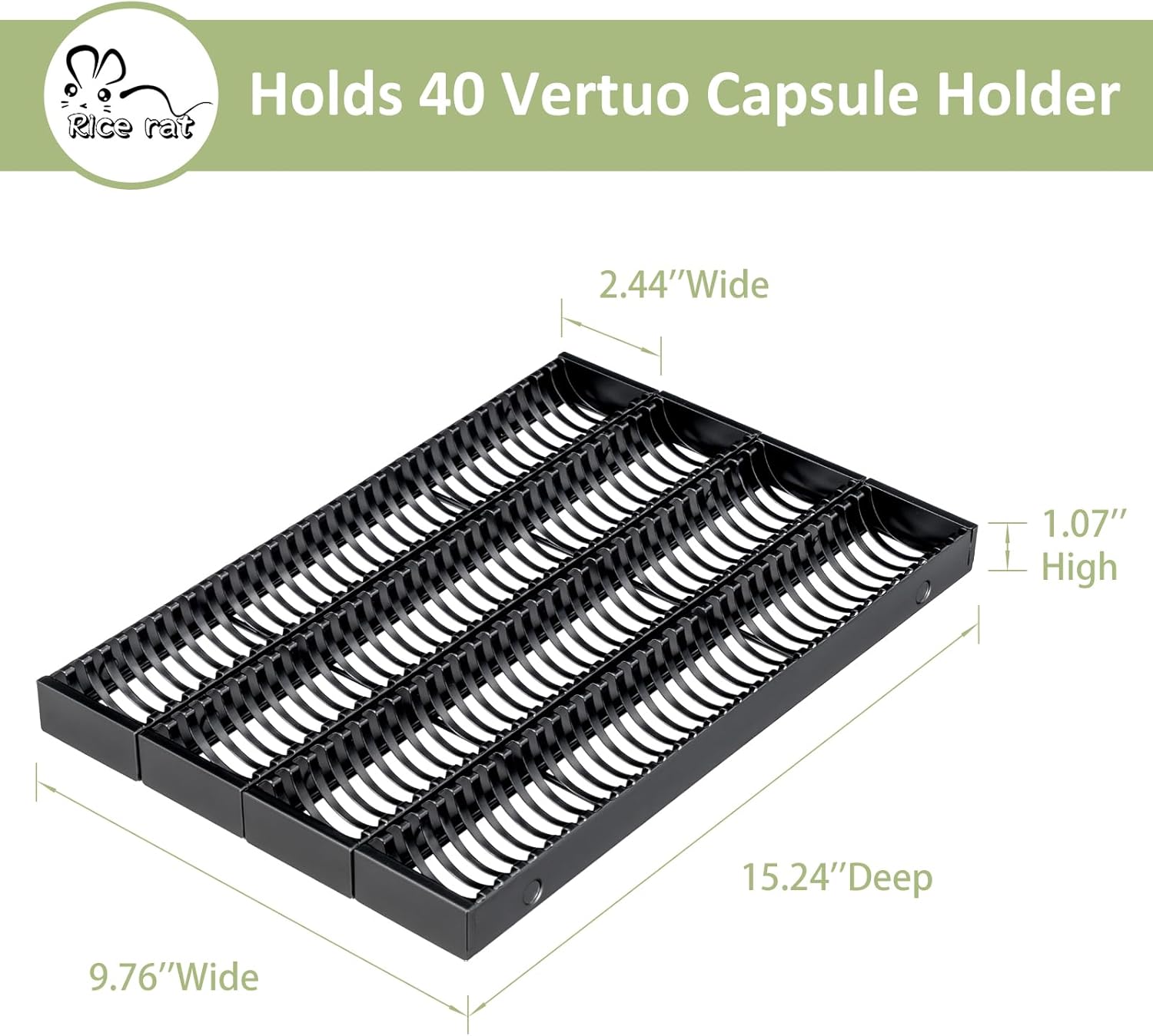 - 【Fits All Size Vertuo Pods】 Universal design,latest Pod drawer easily fits all sizes of Vertuo capsules. Maximum Capacity: (24 pods 12/18 oz) or (33 pods 7.8/5/2.7oz) or (48 pods 1.35oz)