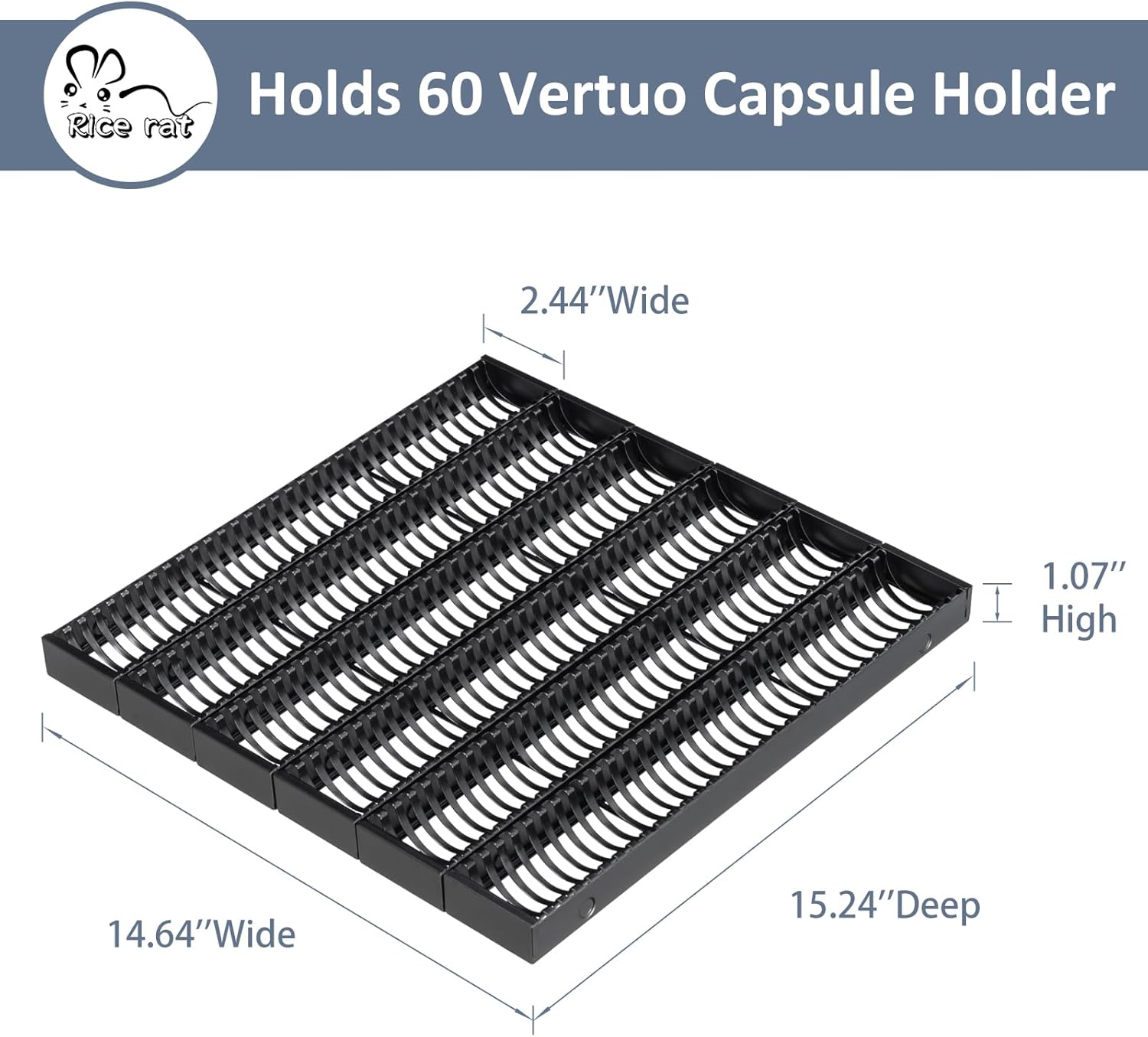 - 【Fits All Size Vertuo Pods】 Universal design,latest Pod drawer easily fits all sizes of Vertuo capsules. Maximum Capacity: (24 pods 12/18 oz) or (33 pods 7.8/5/2.7oz) or (48 pods 1.35oz)