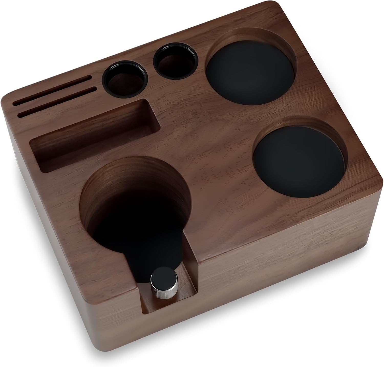 54mm Espresso Tamping Station Walnut Coffee Tamper Station Portafilter Holder,Tamper, and Distributor, Non-Slip Station for Home, Office, Restaurant