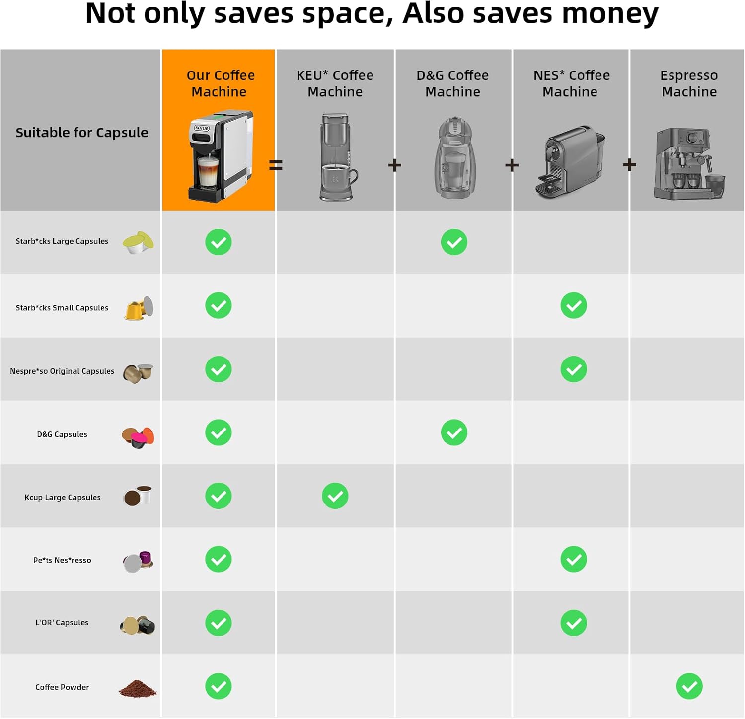 - 【Multi-functional Extraction】This capsule coffee maker is suitable for K*cup/N*spres* capsules/DG/MIO/coffee powder, with this multi-functional capsule coffee maker, you can make different flavors of coffee, one machine can satisfy the whole family's coffee taste needs, it's worth your choice.